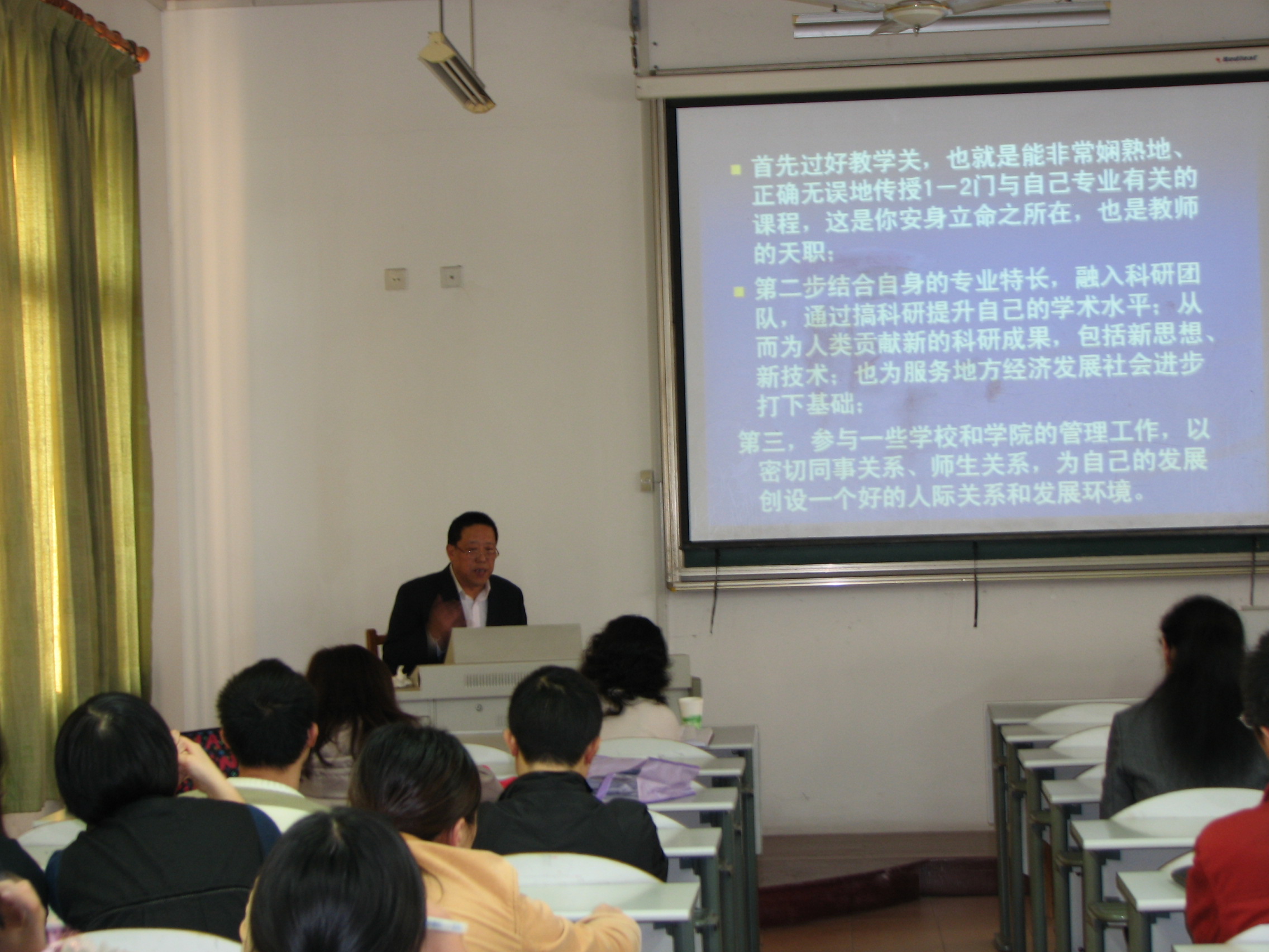 讲座中,夏书记结合青年教师的实际,做了细致的分析,分别从青年教师的职业定位;青年教师正确定位对自身的意义以及正确处理自身发展与百家乐赔率 发展的关系几个方面进行了深入的剖析和讲解。并对青年教师提出了三种追求:教学工作出色、科研搞得好、管理工作搞得好几个方面。另外,夏书记对青年教师的期望很高,同时教会大家“备”课而不是“背”课。