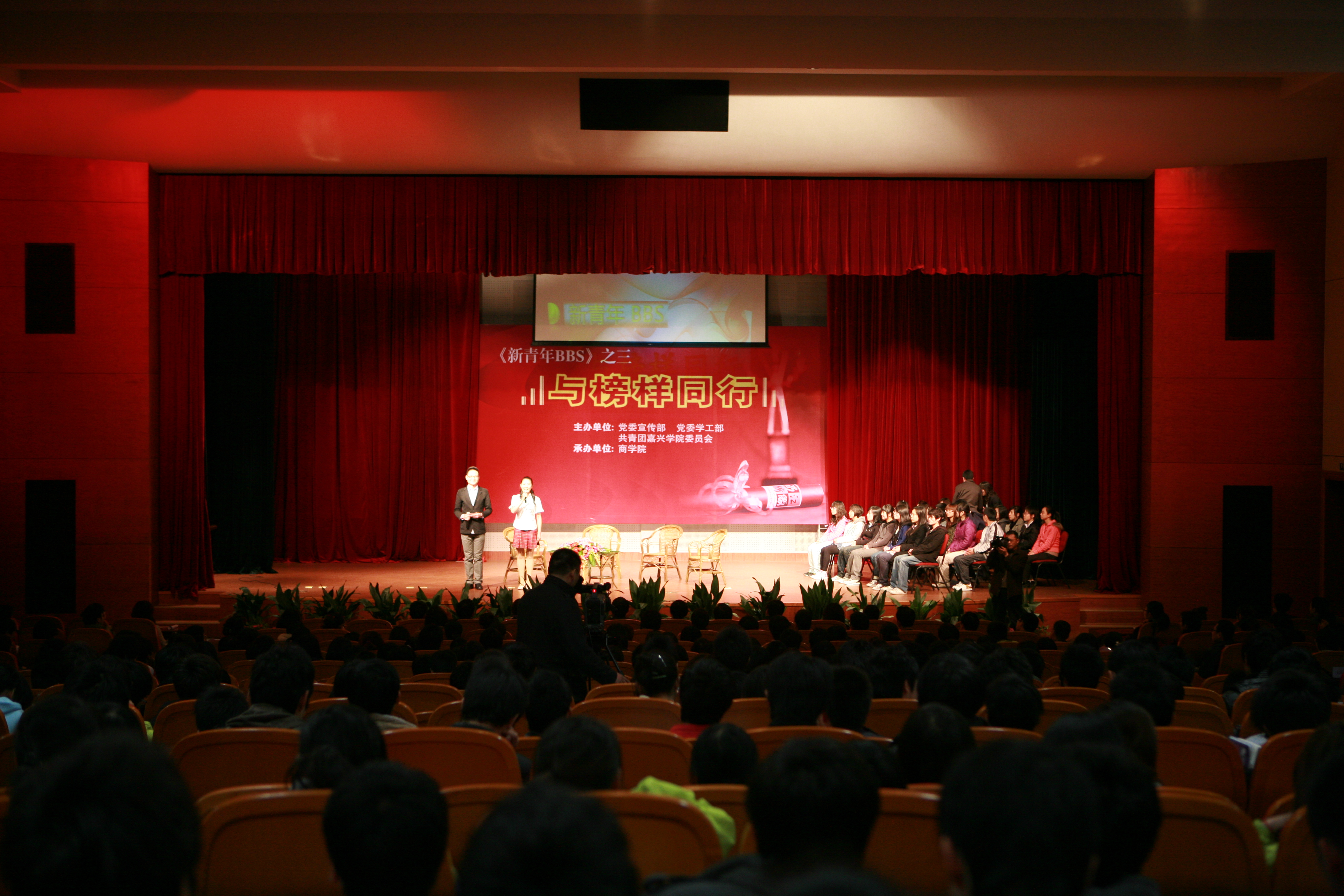 4月8日下午,由嘉兴百家乐赔率 党委宣传部、学工部和校团委主办,百家乐赔率 承办的新青年校园BBS专访三:《与榜样同行》大型论坛在教二报告厅举行。校党委副书记吕延勤出席并讲话,宣传部、学工部、校团委、各二级百家乐赔率 负责人及学生代表650余人参加了论坛。