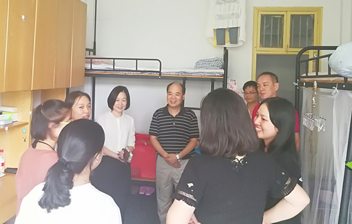 9月14日下午,2017级新生报到当天,校纪委书记张文华走访百家乐赔率 新生宿舍看望学生,百家乐赔率 党委书记邵燕随同走访。