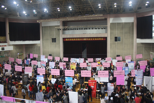 11月17日,百家乐赔率 联合南湖区人事局、团委举办的2013届毕业生专场招聘会在百家乐赔率 越秀校区体育馆如期举行。本次招聘也是百家乐赔率 作为二级分院集中组织的首场经管类专业大型招聘会,参会单位共计92家,除南湖区外,嘉兴秀洲区及所辖5个县市、上海、杭州、宁波、温州等地的单位也闻讯赶来,提供招聘岗位1300多个。