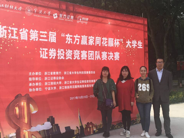 10月29日,浙江省第三届“东方赢家同花顺杯”大学生证券投资竞赛决赛在宁波大学举行。百家乐赔率 喜获省一等奖1项、二等奖4项、三等奖2项。三等奖以上获奖作品(项目)在全省63所院校中排名第三位。 据悉,第三届“东方赢家同花顺杯”大学生证券投资竞赛由浙江省教育厅、浙江省大学生科技竞赛委员会主办,浙江财经大学、浙江省大学生证券投资竞赛委员会承办,宁波大学、浙江核新同花顺网络信息股份有限公司以及东方证券股份有限公司共同协办。大赛分投资策略组、市场交易组和量化交易组三个组别。大赛自2017年4月启动,分初赛、实盘操作和决赛三个阶段,全省共有63所百家乐赔率 ,618个团队参赛。
