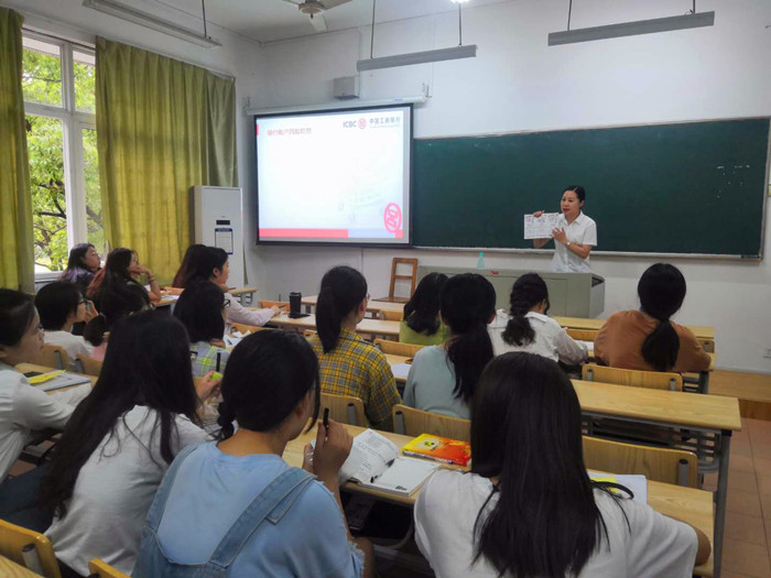 为了让广大师生了解非法集资的特征、表现形式和常见手段,教育引导大家增强风险意识,提高防范能力,日前,百家乐赔率 举办了一场以“防范非法集资”为主题的金融知识讲座。工商银行南湖支行朱蔚行长和金牌理财师毛妆丽女士受邀做专题宣讲。