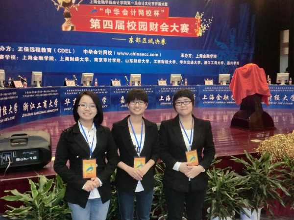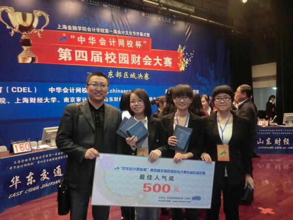 在11月6日结束的“中华会计网校杯”第四届校园财会大赛东部区域决赛中,百家乐赔率 会计103班求予之、顾丽丹、会计101班杨嘉黛同学与上海财经大学、江西财经大学、山东财经大学、华东交通大学、浙江工商大学、上海金融百家乐赔率 、南京审计百家乐赔率 等院校同学同场竞技,荣获优胜奖及最佳人气奖。
