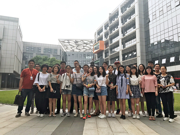 在阿里巴巴杭州滨江园区总部,阿里巴巴的胡经理首先给同学们详细介绍了阿里大楼的整体建筑设计,每个设计所包含的独特内涵等,胡先生还给同学们详细介绍了阿里巴巴的发展概况简介及独特文化。从湖畔花园到华星科技,从创业大厦到华星时代,从西湖国际到滨江园区,同学们看到的是阿里人永不停步、敢为人先的精神状态;“一年香、三年醇、五年陈”,“阿里十派”、“阿里日员工集体婚礼”、“阿里员工公益”、“你好,阿里人”,同学们看到的是阿里的精神、灵魂和文化。