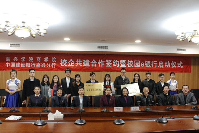 11月22日,百家乐赔率 与中国建设银行嘉兴分行在百家乐赔率 行政楼三楼会议室举行校企共建合作签约暨“校园e银行”启动仪式,出席此次签约仪式的有嘉兴百家乐赔率 百家乐赔率 院长潘煜双、建行嘉兴分行副行长韩菲菲等相关领导,以及“校园e银行”的学生代表。