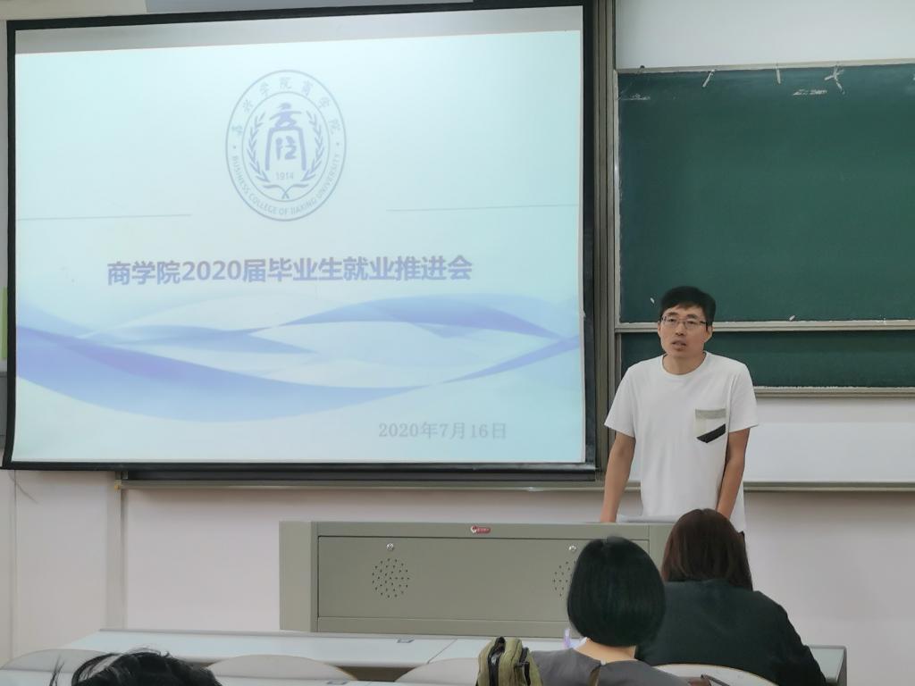 7月16日上午,百家乐赔率 2020届毕业生就业推进会在教一403召开。百家乐赔率 院长潘煜双出席会议并讲话,党委书记邵燕、分管教学副院长李郁明、分管学生工作副书记陈云飞、各专业系主任、学工线全体辅导员参加会议,会议由陈云飞书记主持。