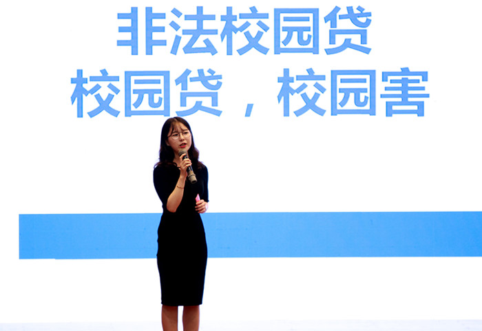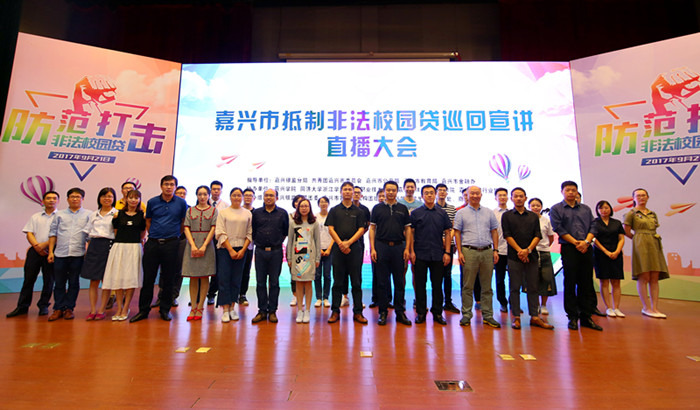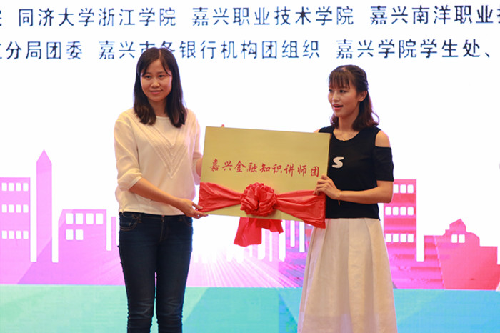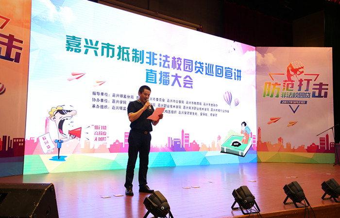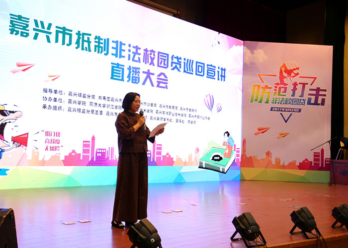 宣讲会上,浙江省金融团工委代表周佳茵为嘉兴银监分局团委授牌“嘉兴金融知识讲师团”。嘉兴银监分局团委还组织了微课堂、互动问答、小品、RAP歌曲、合唱等形式多样、内容丰富的节目来宣传抵制非法“校园贷”的危害,潜移默化中让学生认识到“校园贷”存在的安全缺陷和风险漏洞,“名为低门槛,实为高风险”,“合同涉嫌欺诈”等使大学生成为部分网贷平台待宰的“羔羊”的招数。