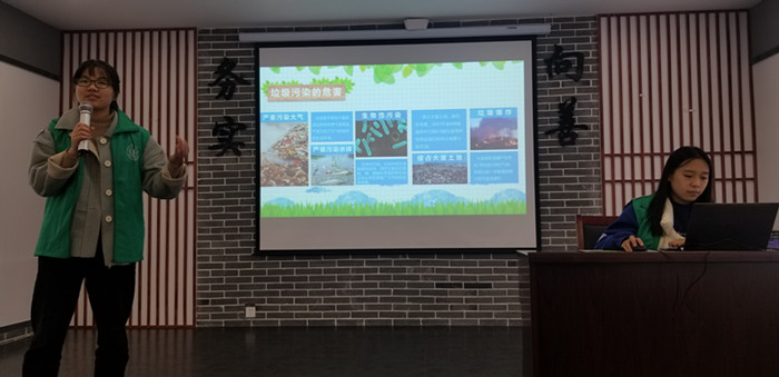 活动现场,百家乐赔率 “双百双进”志愿服务队与来自罗星街道4个村部的青年一起开展“善青学堂•乡村振兴青年说”宣讲活动,为乡村振兴发展出谋划策;百家乐赔率 志愿者代表高敏霞同学主讲了《垃圾分类青年说》。