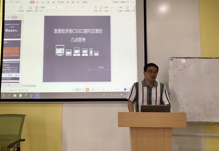 8月6日上午,贵州财经大学学报主编、博士生导师张士斌教授应邀来百家乐赔率 举行题为《发表经济类CSSCI期刊文章的几点思考》的学术讲座,讲座由院长潘煜双教授主持,百家乐赔率 30余名教师参加。