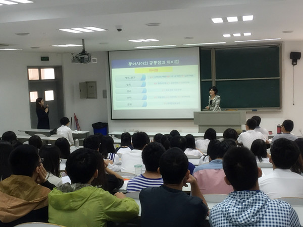 应省一流学科区域经济学及国际问题与发展研究所邀请,2016年9月30日上午,韩国明知大学姜允玉教授为百家乐赔率 师生作了一场题为“亚洲共同体与亚洲汉字文化交流”的学术讲座。 姜允玉教授现任韩国明知大学东亚研究所所长,近年来致力于从跨学科视角探讨东亚区域一体化问题。讲座中,姜教授从汉字的发展演变以及中、日、韩三国使用汉字的历史与现状等多方面为师生阐述了汉字文化传播在东亚共同体构建和东亚文化交流中的重要作用,并在讲座后与现场师生进行了热烈的互动。