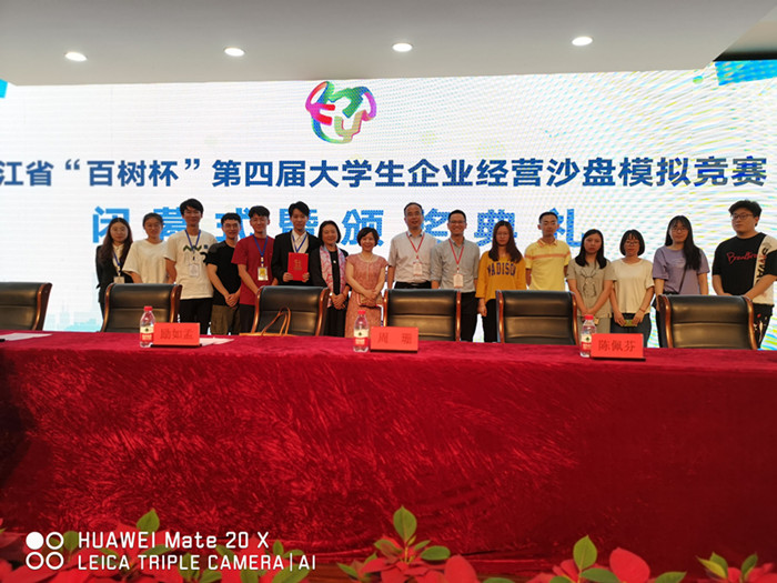 5月24-26日,由浙江省教育厅、浙江省大学生科技竞赛委员会主办,百家乐赔率 作为赛项秘书单位的浙江省“百树杯”第四届大学生企业经营沙盘模拟竞赛(本科组)决赛在浙江财经大学成功举行。本次本科组决赛共有省内48所高校的183支队伍参赛,贵州百家乐赔率 作为省外特邀高校派出2支队伍参赛。承办单位浙江财经大学副校长励如孟、竞赛秘书处单位嘉兴百家乐赔率 副校长周珊、下届承办单位浙江万里百家乐赔率 副校长马建荣、浙江省大学生科技竞赛委员会竞赛巡视员陈佩芬和竞赛专家委员会副主任潘煜双等出席闭幕式暨颁奖典礼。