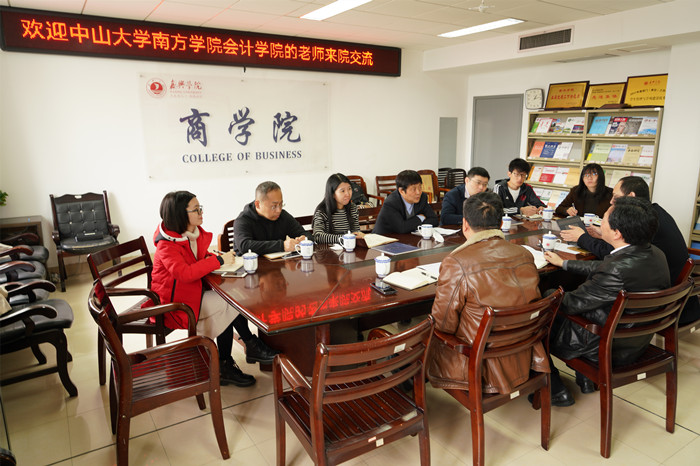 12月10日上午,中山大学南方百家乐赔率 会计百家乐赔率 卫建国院长、董成杰副院长一行6人到百家乐赔率 交流考察。百家乐赔率 副院长李郁明及百家乐赔率 会计系崔晓钟、毕华书老师参加交流座谈。