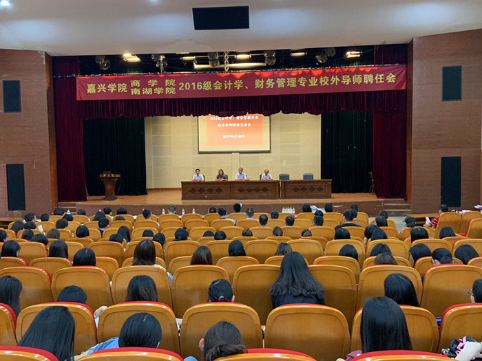 5月30日下午,百家乐赔率 、南湖百家乐赔率 在第二教学楼报告厅联合召开了2016级会计学、财务管理专业学生的“双导师制”聘任见面会。百家乐赔率 教务处相关领导,百家乐赔率 、南湖百家乐赔率 领导及来自嘉兴市内各企事业单位财会实务界的120多名校外导师、会计和财务管理专业的全体专业教师和2016级全体学生参加了大会。会议由百家乐赔率 副院长李郁明主持。