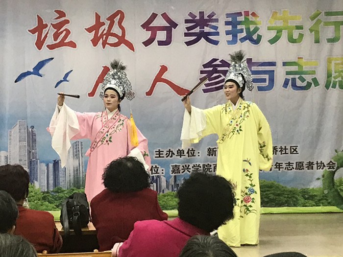 活动现场,志愿者们为社区居民献上了一场精心准备的文艺演出,三句半、合唱、越剧等喜闻乐见的小节目赢得居民们阵阵掌声。在节目间隙,志愿者们特别邀请了社区垃圾分类督导员参与指导,开展了垃圾分类知识有奖竞猜、垃圾分类有奖竞投等小游戏,寓教于乐中将垃圾分类与正确投放知识分享给社区居民,让社区居民积极参与到实践垃圾分类的行动中,逐步养成垃圾分类的好习惯。