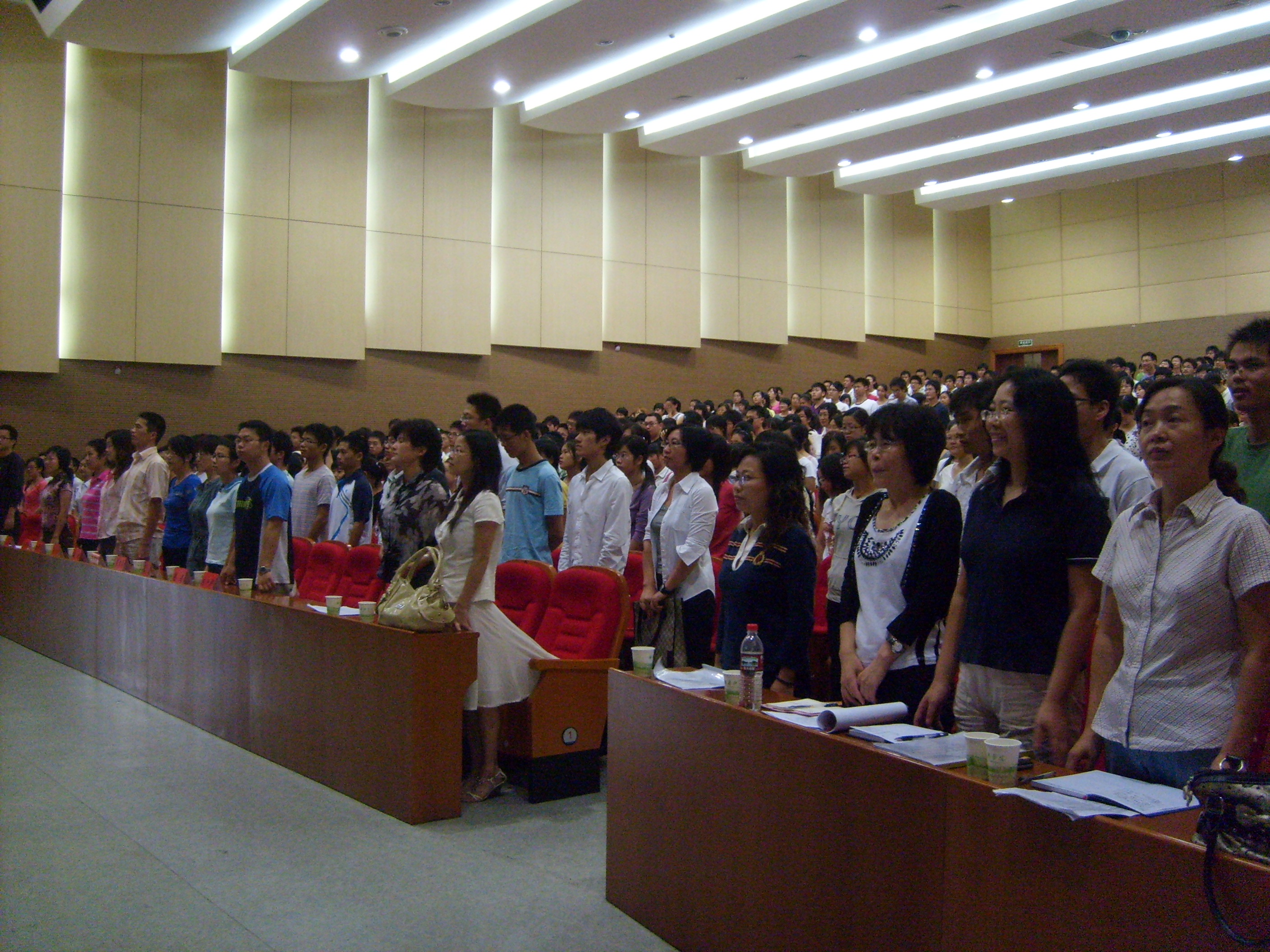 9 月 6 日 上午九点整,百家乐赔率 2008级新生开学典礼在第二教学楼报告厅隆重举行。典礼由百家乐赔率 党总支副书记郝文静老师主持。百家乐赔率 院长钱方明老师,党总支书记潘抗美老师,副院长潘煜双老师 、孔冬老师,百家乐赔率 各系主任以及大一新生和其班主任、辅导员,以及部分团学成员参加了此次典礼。会上由院长钱方明教授致辞,他要求新生以“严谨、善思、执着、创新”的目标为人生准则,学会感恩人生,坚持脚踏实地学习,生活。党总支副书记郝文静老师从“心变、向变、脸变、法变”四个角度解释了新生即将面临的蜕变,希望新生们能尽快适应新生活。