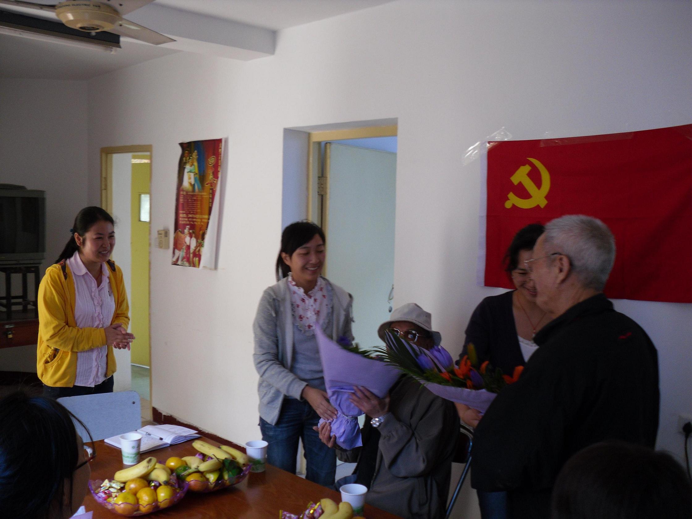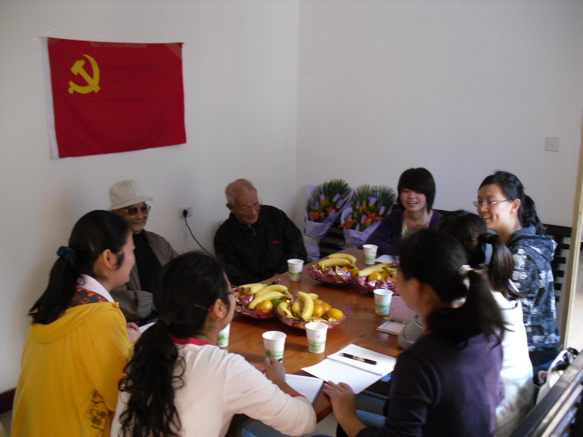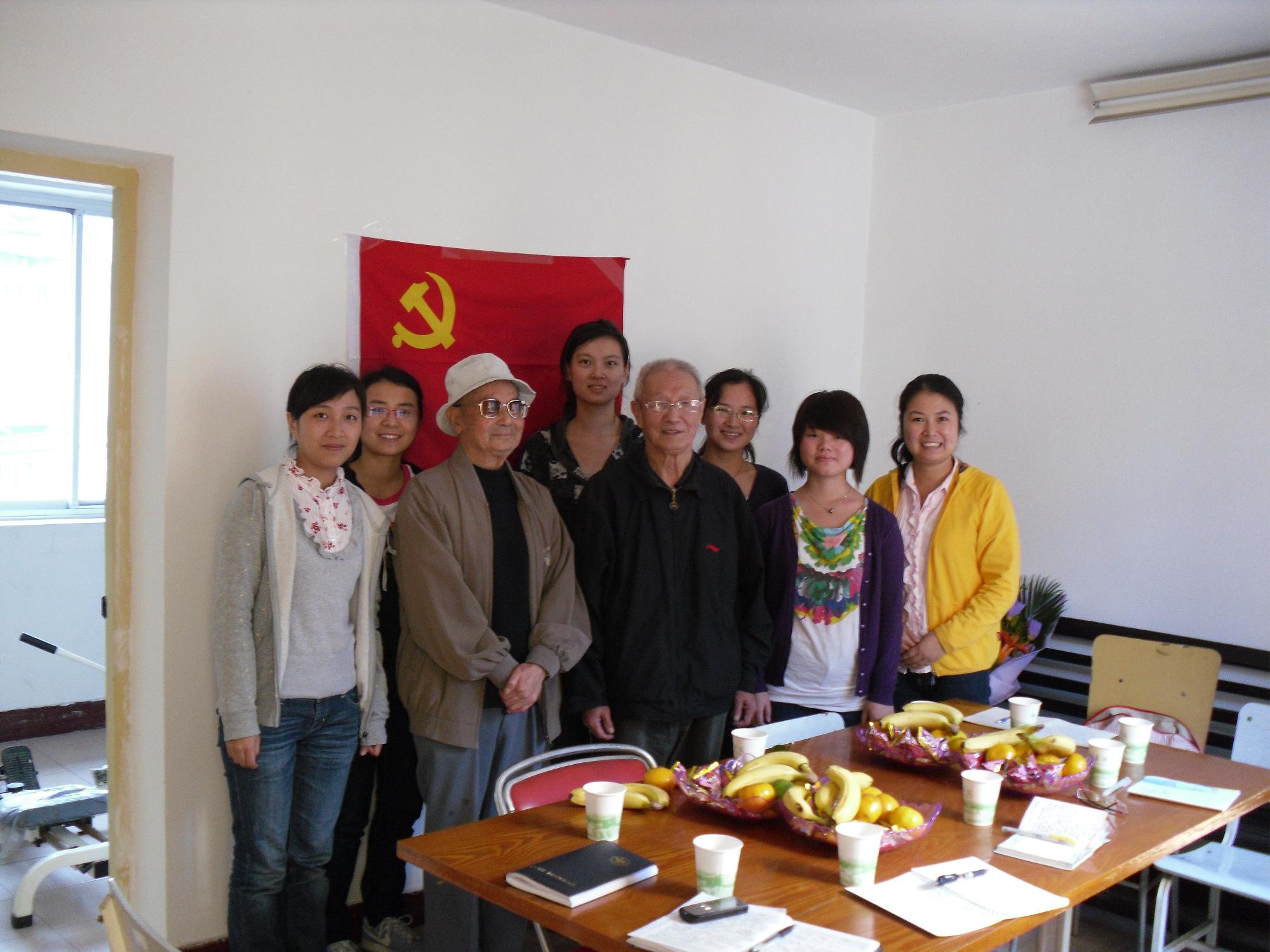 之后,党员们还向两位离休老干部学习方正为人、勤慎治学的校训精神,学习做人做事的道理。在座谈中, 何 老师还嘱咐我们,青年人一要树立崇高的理想,坚定的信念,思想上与党中央保持一致,与时俱进,为人类壮丽事业而奋斗;二要善于学习,养成读书的好习惯;三是要待人以诚,做道德高尚的人。