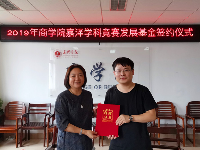 9月5日下午,在教一604举行了2019年百家乐赔率 嘉泽学科竞赛发展基金签约仪式。百家乐赔率 财务2003级校友、浙江容诚会计师事务所业务合伙人叶增水和百家乐赔率 院长潘煜双签订了捐赠协议书,百家乐赔率 事务中心办公室胡笳丽参加了本次签约仪式,仪式由百家乐赔率 党委副书记陈云飞主持。