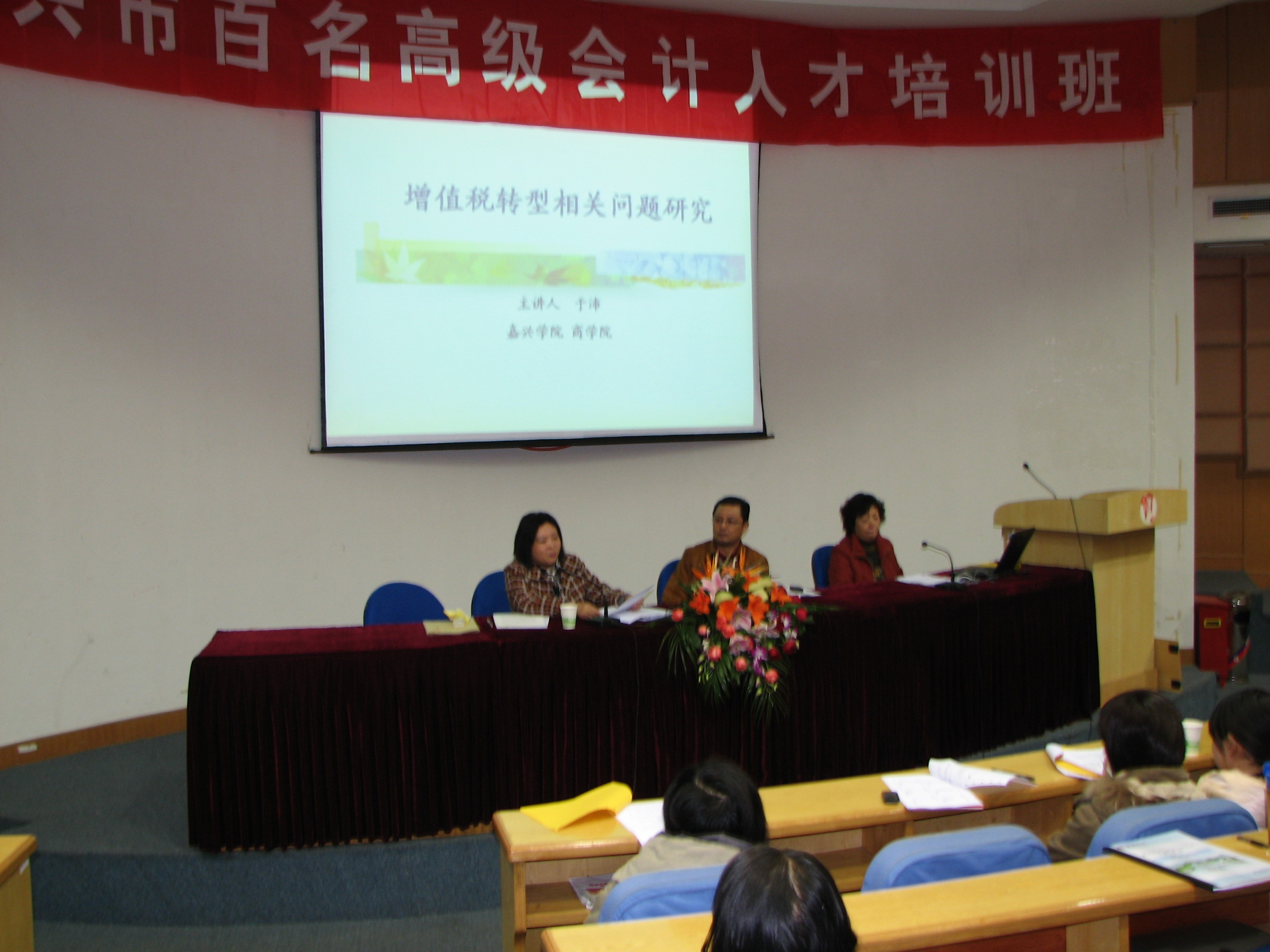 11月18日,嘉兴市百名高级会计人才培训班第三讲在行政楼一楼报告厅举行,本次培训的主要内容有两部分。上午由于沛教授主讲,主要内容是增值税转型相关问题,于教授分别从增值税转型改革必要性,增值税改革主要内容,增值税转型下的会计处理等几个方面进行讲述。下午由郁文副教授主讲,主要内容是卓越领导力的提升,从我国企业的领导现状,分别介绍了领导理论经历的几个发展阶段,领导者必须拥有的几种品质,卓越领导的八大特质以及卓越领导的基本方法等几个方面。两位老师的讲课既有理论性,又有实用性,课堂气氛活跃,不时传来大家的阵阵笑声。通过对培训效果的评价,学员们普遍反映较好,同时他们也对授课内容、授课时间的安排等方面提出了一些意见和建议。