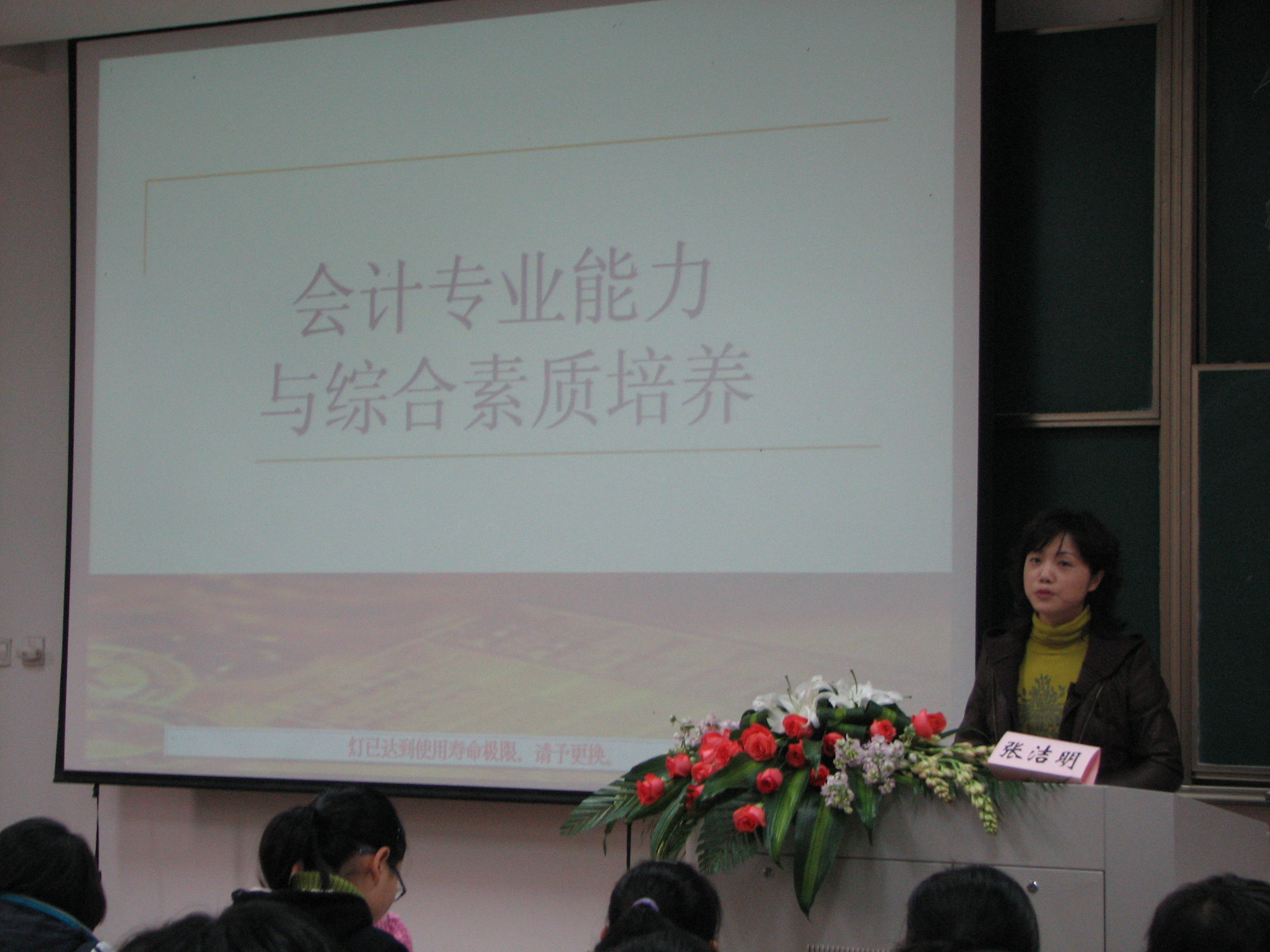 近几年百家乐赔率 会计、财务专业学生在银行、信用社等金融业就业人数较多,为了让更多学生尽早了解银行基本业务和能力素质要求,12月4日下午15:30分,百家乐赔率 特别邀请了现任招商银行嘉兴支行信贷管理部总经理及百家乐赔率 94届会计学专业校友代表张洁明女士回校,并给同学们做了一场名为“会计专业能力和综合素质培养”的专题讲座。会计系于沛老师主持了讲座。
