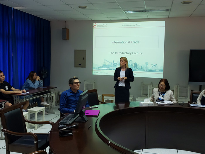 5月10日下午三点,百家乐赔率 邀请德国国际研究院的克里斯汀娜女士在经管中心三楼会议室举办了一场题为“中德贸易重要性”的学术讲座。国经系承担全英授课的相关教师和国际化专业的学生等三十余人参加了此次学术讲座。