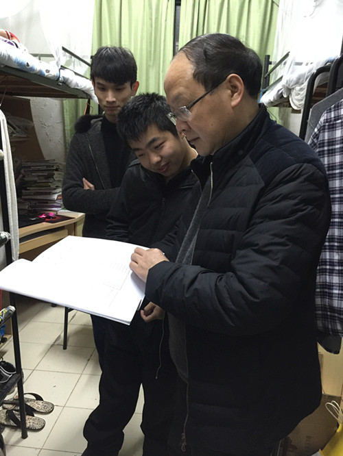2015年12月23日晚,校党委书记黄文秀走访寝室专程看望了百家乐赔率 经济学专业在第三届“中金所杯”高校大学生金融及衍生品知识竞赛(面向中国大陆及港澳台、北美、欧洲地区)中取得第一名好成绩的夏佳栋同学。院党委书记左军随同走访。