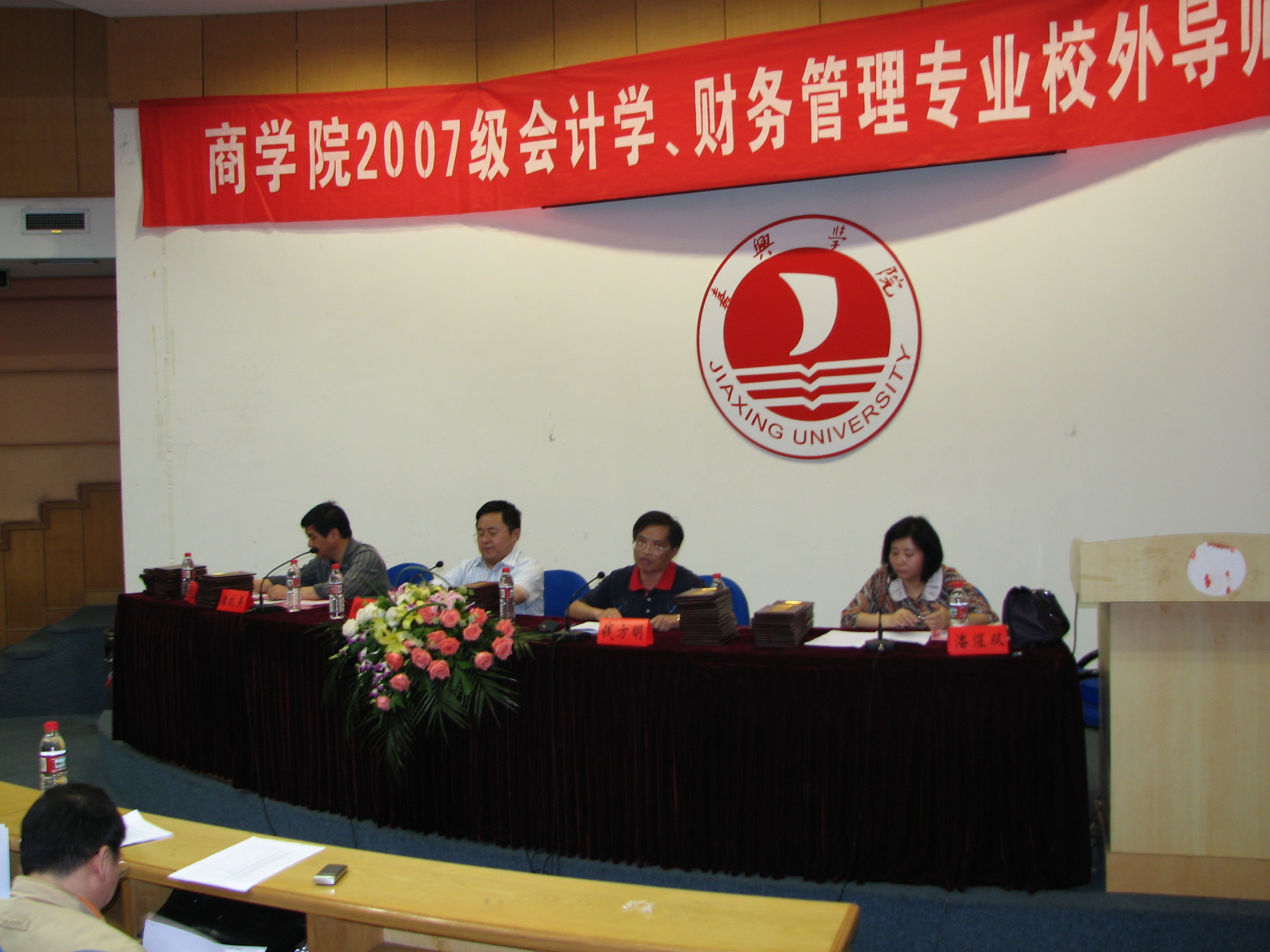 5月20日下午,百家乐赔率 在行政楼一楼报告厅举行2007级会计学、财务管理专业学生校外导师聘任会,会议由潘煜双副院长主持,教务处胡俊云处长、百家乐赔率 钱方明院长分别讲话,对校外导师多年来对双导师工作的支持表示感谢,希望学生珍惜百家乐赔率 为他们创造的机会,经常的与导师联系,多向导师学习。会后,各位校外导师和所指导的学生在教二各教室举行了见面会。