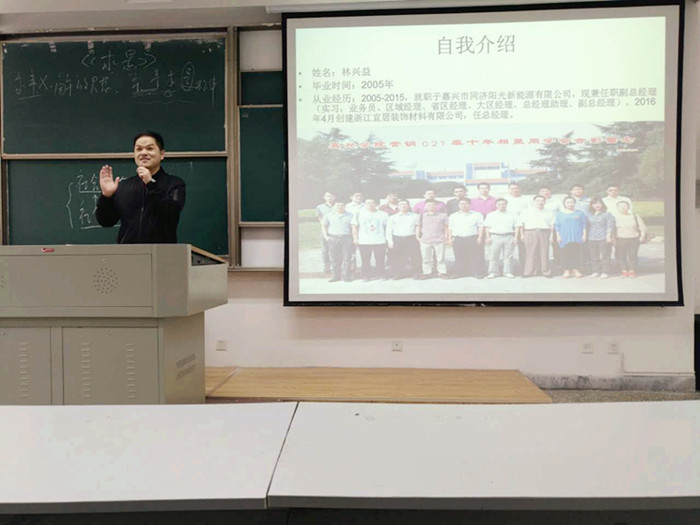 3月29日,市场营销专业第二场“校外导师讲坛”开讲,校外导师林兴益先生受邀前来授课。林兴益是百家乐赔率 市场营销专业2005届校友,现任嘉兴市同济阳光新能源有限公司副总经理,并受聘为百家乐赔率 市场营销专业试验区首批校外导师。 林兴益和同学们分享了自己从一个实习生到如今的总经理所经历的人和事,从一开始的职场菜鸟到如今的有所作为整个过程中的人生感悟。林兴益告诉同学们,坚持很重要,要热爱自己的工作并为之不懈努力;要心无旁骛专心业务,不八卦、不是非;要合理处理公司人际关系,维护好上下级关系。林兴益生动丰富的实战经验,绘声绘色、充满睿智的讲解与风趣的谈吐博让同学们获益匪浅,得了同学们的阵阵掌声。 在随后的交流环节,林兴益还耐心解答了同学们在校学习的困惑,和同学们围绕如何做好职业经理人、如何做好实习、营销职业人才应具备哪些素质等话题进行了富有成效的交流。