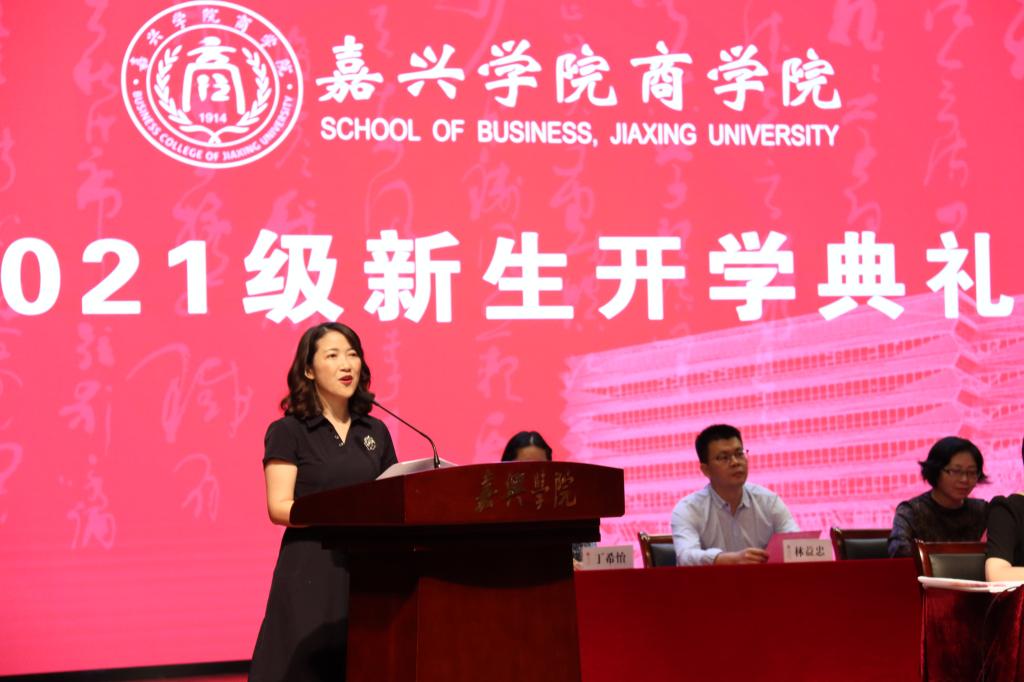 院长潘煜双教授发表讲话。她代表全院师生向加入百家乐赔率 的2021级全体同学和联培研究生表示热烈欢迎,亲切地点出了距离百家乐赔率 最近、最远、来自海拔最高地区和最有缘分的新生情况;她在谆谆教导中殷切希望同学们在大学重新理解如何学好知识,首在立志、重在勤勉、更在践行;她嘱咐,新商院人要带着“旧学新知继前贤”的“小我”而来,要带着“巨木栋梁担铁肩”的“大我”而来,要经风雨、见世面才能壮筋骨、长才干,才能从嘉禾幼苗长成为巨木栋梁;她希望同学们能够坚守初心,直面机遇和挑战,不负青春、不负商院、不负家国、不负时代。