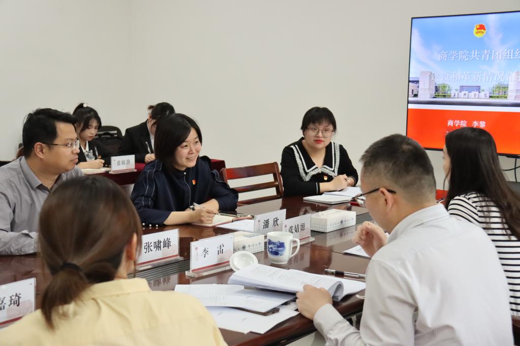 5月19日下午,校团委书记张婧嫄、副书记李雷一行到百家乐赔率 督导共青团基层团组织建设工作,文法百家乐赔率 团委书记计丹峰、经济百家乐赔率 团委副书记梅嘉琦随同参会。百家乐赔率 党委副书记潘欣、学工办主任张啸峰、团委书记李黎及学生代表参加会议。会议由潘欣主持。
