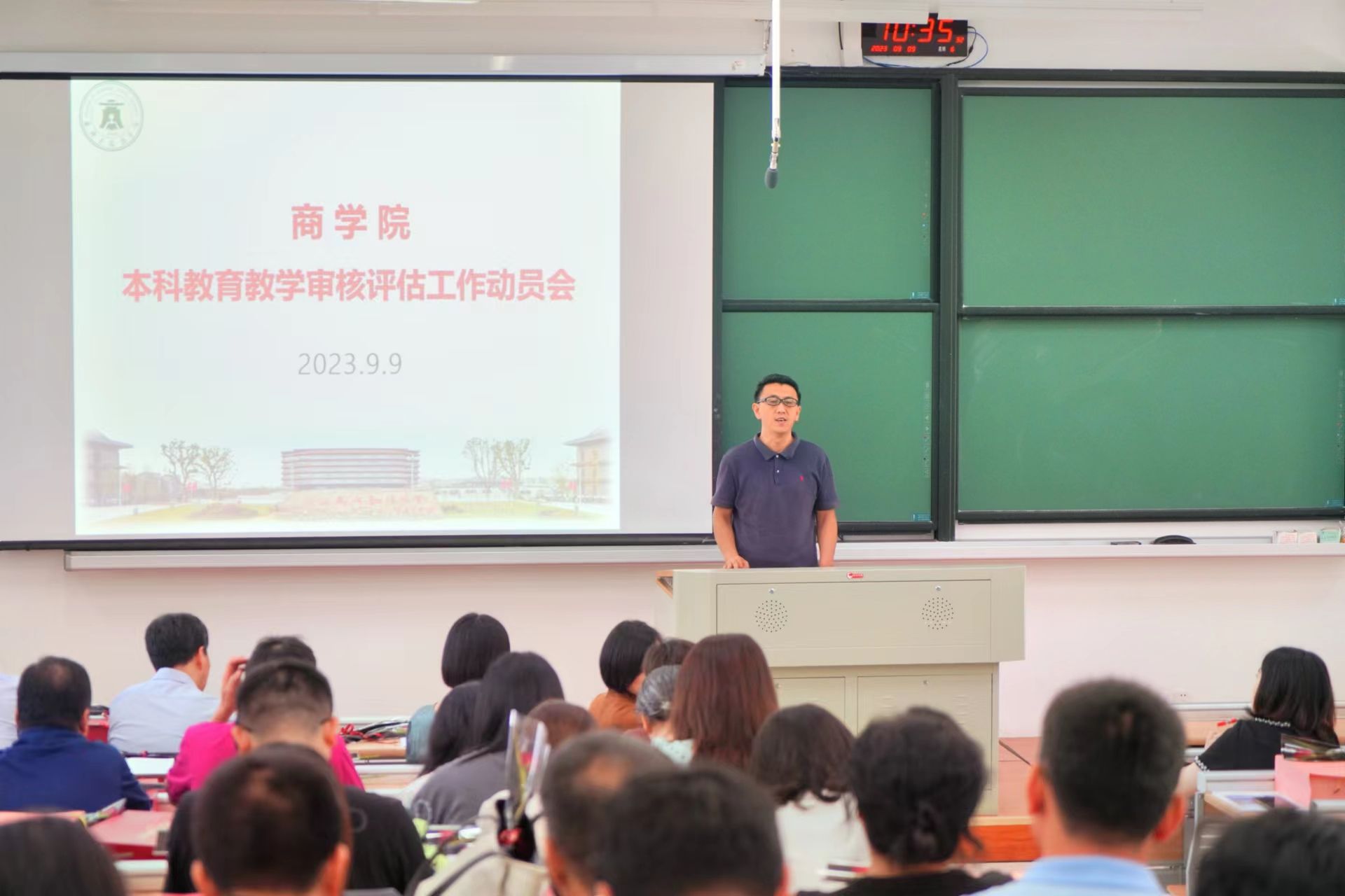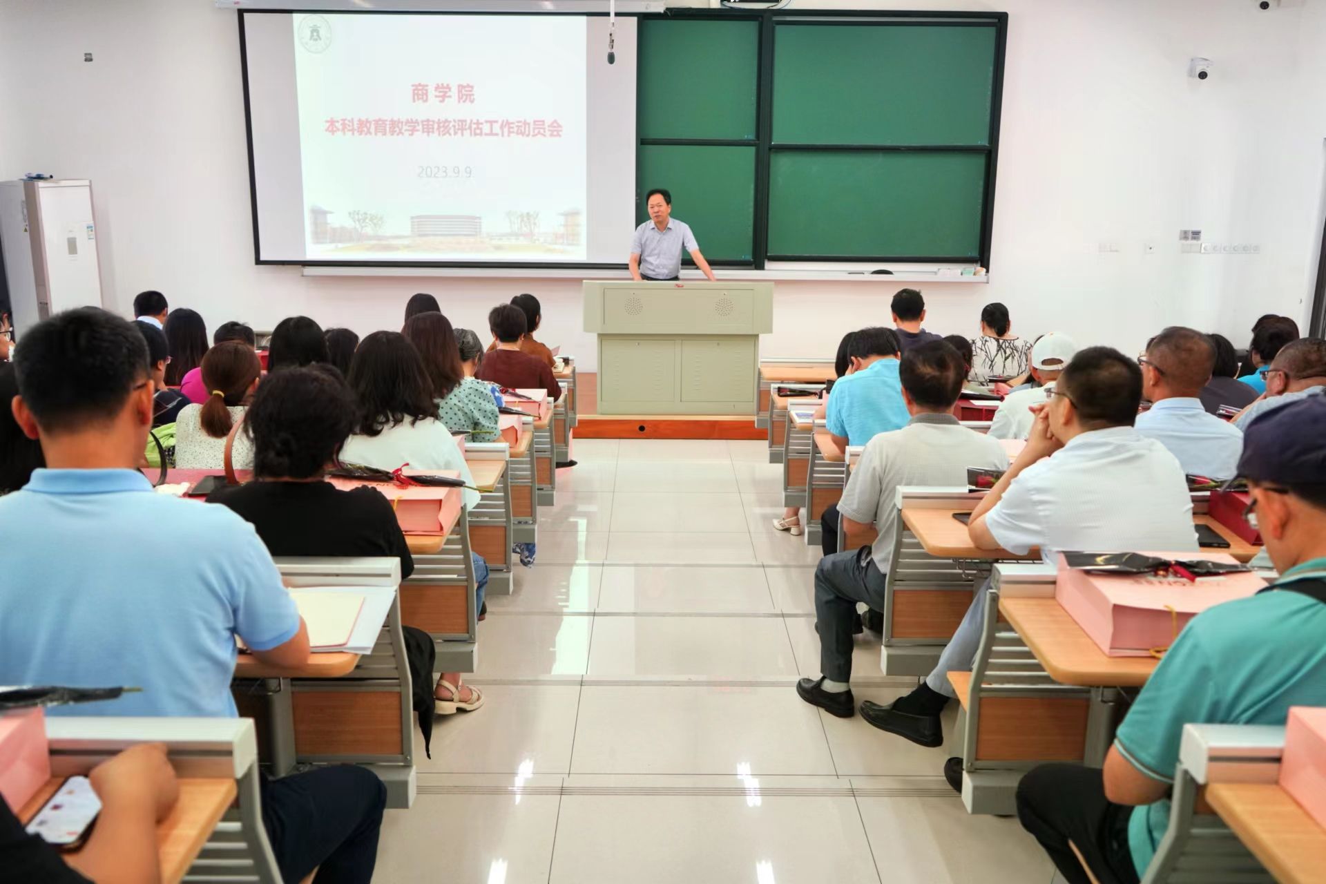 为迎接即将到来的新一轮本科教育教学审核评估工作、明确工作要求和任务、扎实工作推进与部署,9月9日上午,百家乐赔率 在明德楼140教室召开本科教育教学审核评估工作动员会。校教务处处长艾宁、副处长张彩云,百家乐赔率 党政班子成员、全体教职工参加了本次会议。会议由百家乐赔率 党委书记邵燕主持。