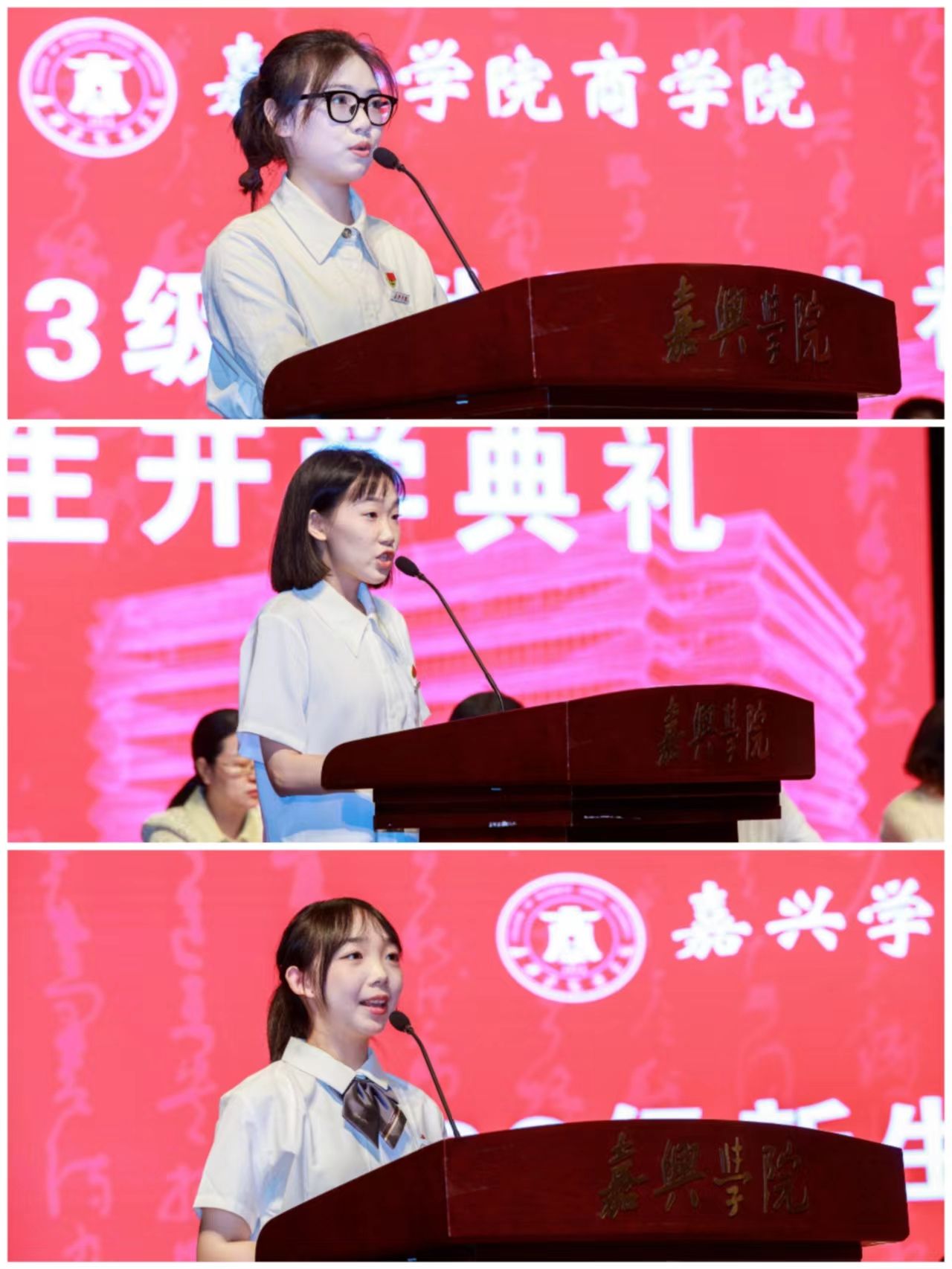 在校生代表工商管理专业王芷萱、2023级本科新生代表会计学专业童瑶、研究生新生代表会计硕士刘宸希分别发言。