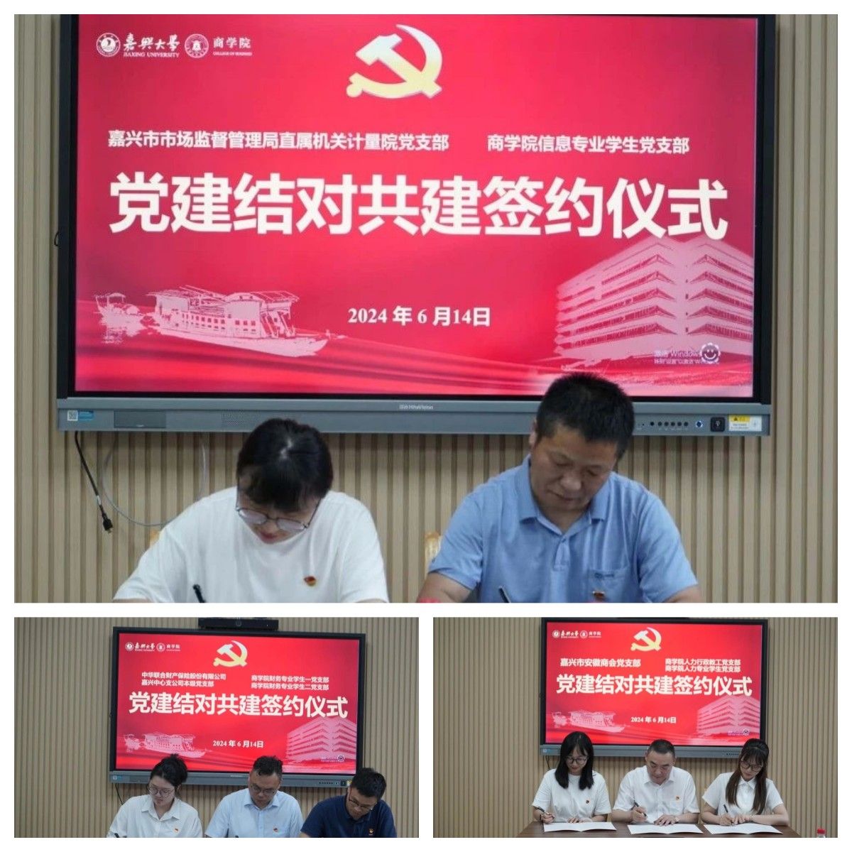在活动中,百家乐赔率 信息专业学生党支部与嘉兴市市场监督管理局直属机关计量院党支部、百家乐赔率 财务专业学生一、二党支部与中华联合财产保险股份有限公司嘉兴中心支公司本级党支部、百家乐赔率 人力行政教工、人力学生党支部与嘉兴市安徽商会党支部分别签署党建结对共建协议书。