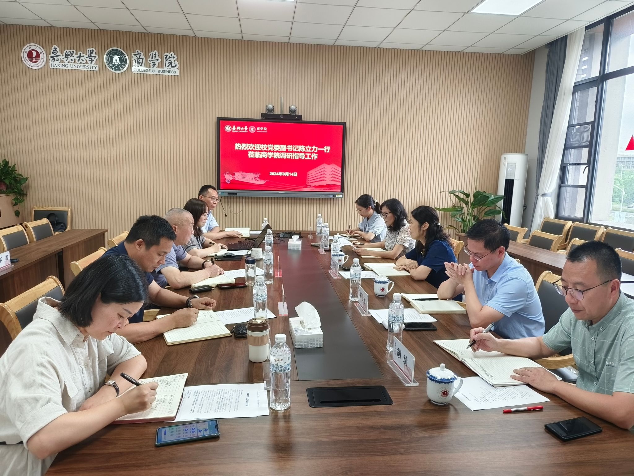 9月14日下午,校党委副书记陈立力到商百家乐赔率 调研指导工作,百家乐赔率 党政领导班子成员参加调研会。