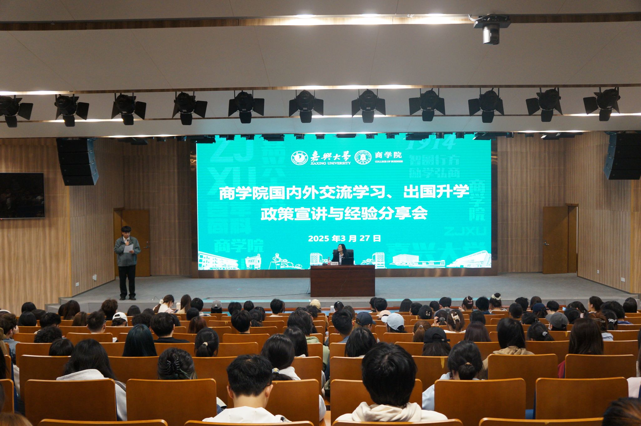 3月27日下午,百家乐赔率 于图书馆一楼学术报告厅成功举办了一场聚焦国内外交流学习与出国升学的政策宣讲会。此次宣讲会特别邀请了国际交流与合作处何俸华老师、百家乐赔率 国际教育与交流中心执行主任章俊杰老师、百家乐赔率 人力系朱海萍老师。活动吸引了近300名同学踊跃参与,现场氛围热烈。