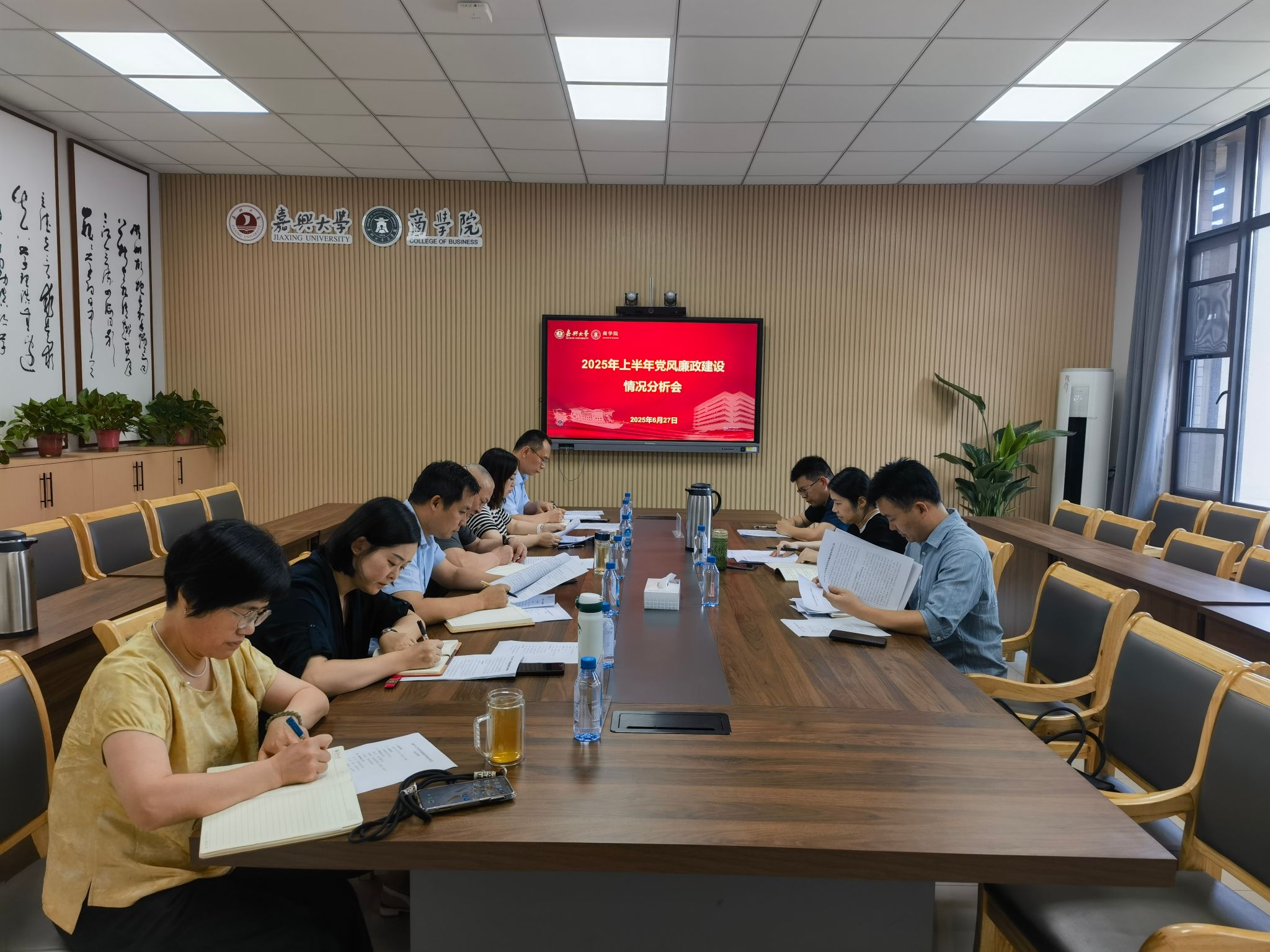 6月27日,百家乐赔率 召开2025年上半年党风廉政建设分析会。校党委副书记陈立力、校纪检监察室(巡察办)副主任徐建伟到会指导,校特约监察员林益忠列席会议。百家乐赔率 全体党政领导班子成员参加。会议由院党委书记虞岚主持。