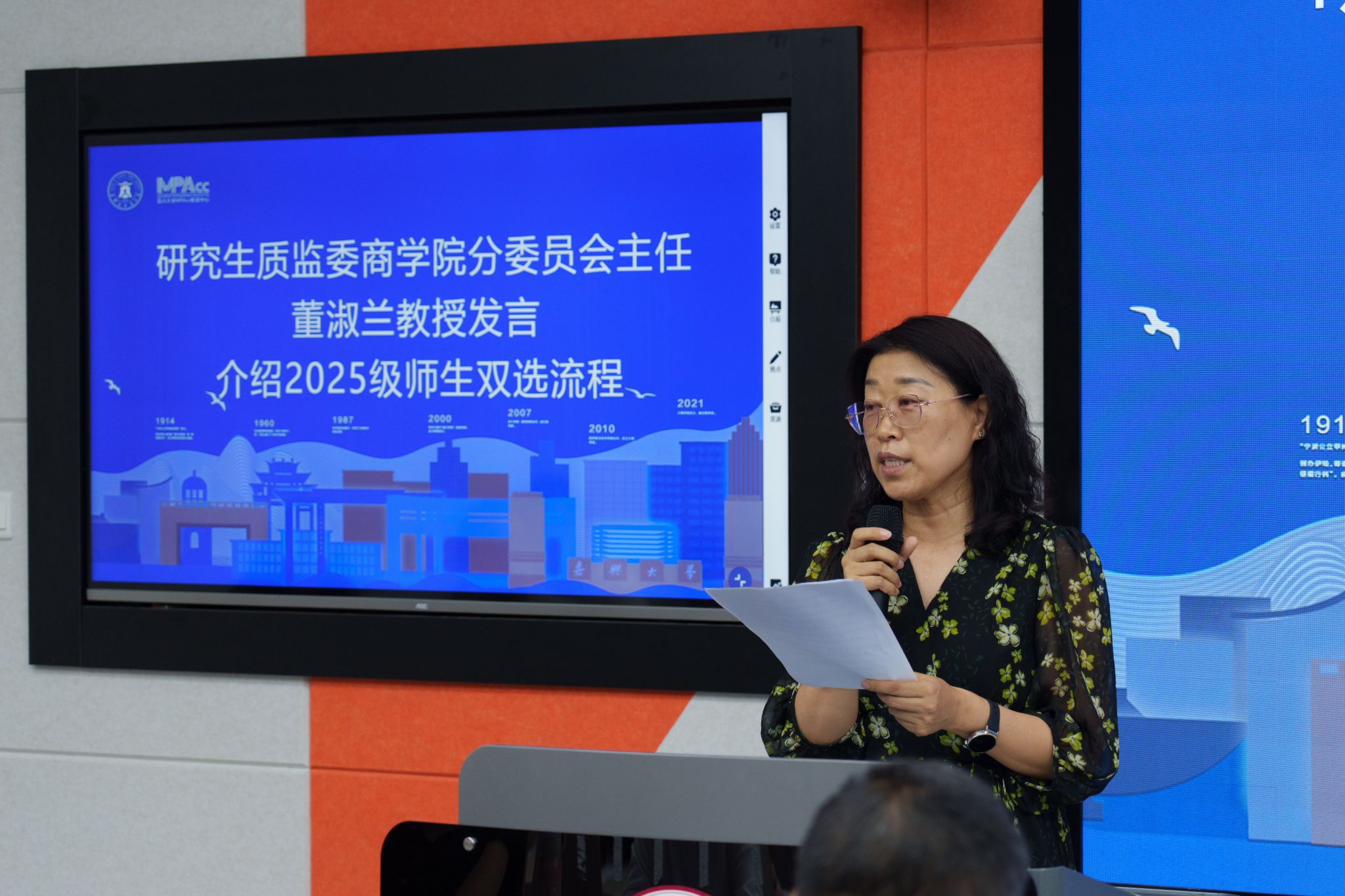 会议伊始,崔晓钟介绍了会议议程及参会老师。随后,研究生质监委百家乐赔率 分委会主任董淑兰教授介绍了2025级会计硕士师生双选流程,并寄望同学们以高标准完成每一项学业任务——不论是课程学习、实习实践,还是毕业论文的选题、研究与答辩,做“高标准、严要求”的受益者、践行者和维护者。