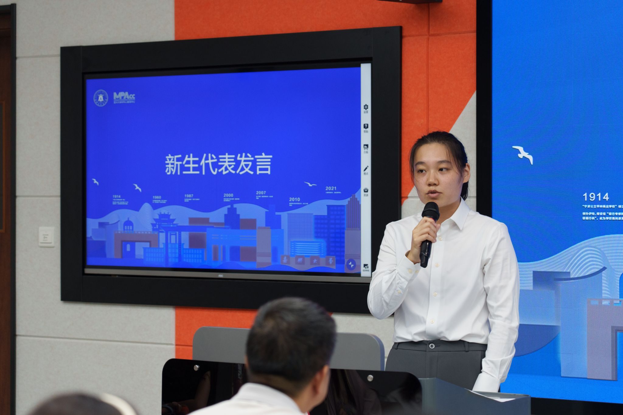 新生代表会计硕士251班祝婧同学表示作为研究生,需要成长为具备批判性思维、创新精神与战略洞见的“思考者”和“设计者”,今后将在导师的带领下,夯实理论基础,开拓创新思维,做当之无愧的“嘉大人”。