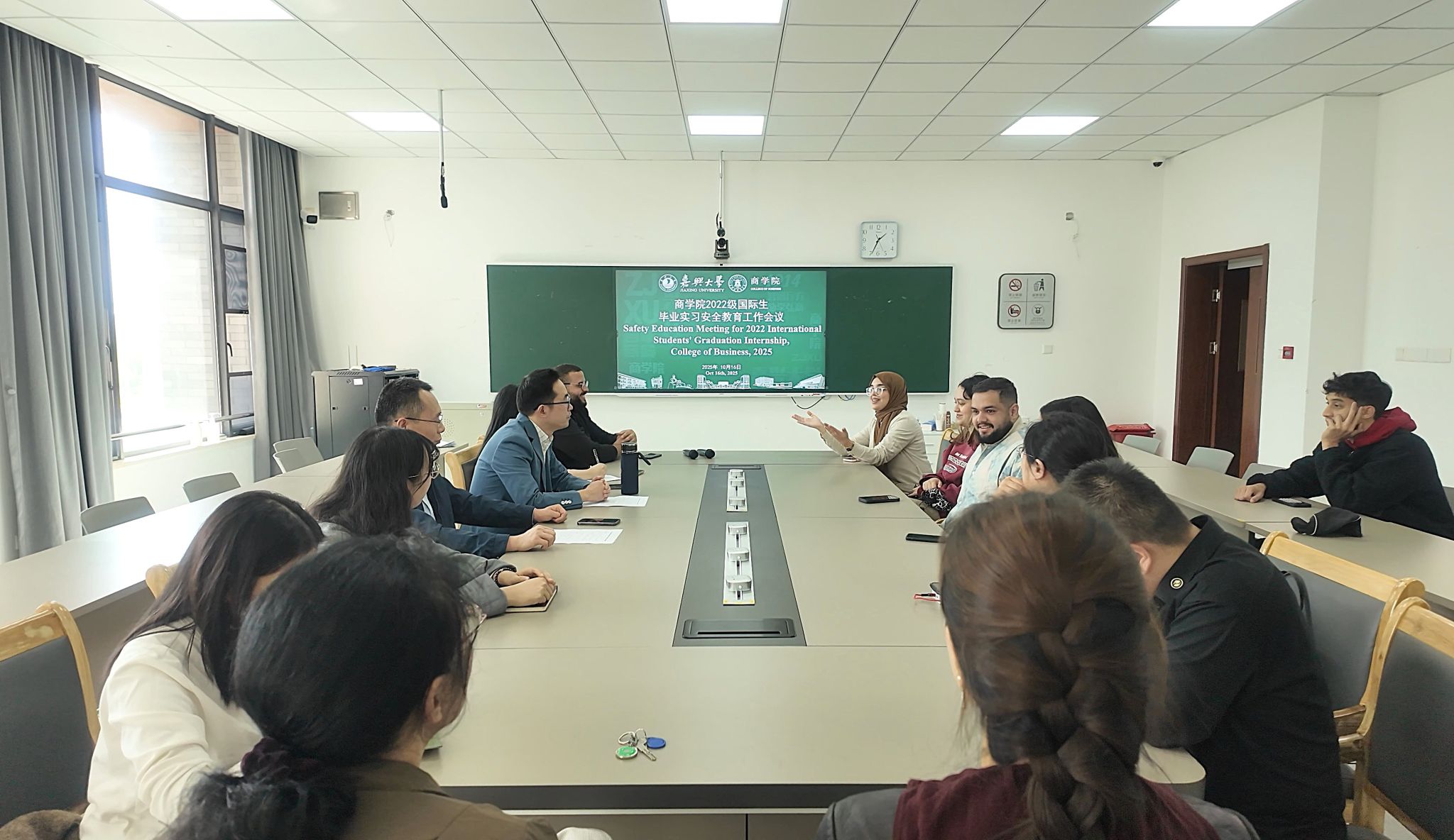 为确保百家乐赔率 2022级首届工商管理专业国际生顺利开展企业实习、提高安全意识并明确毕业论文相关要求,10月23日,百家乐赔率 召开了国际生毕业实习安全教育会议。百家乐赔率 副院长冯磊东、工商管理系主任林益忠、国际生导师代表程文红、潘茜、蔡鑫宇、莫甜田、何琳、徐婕出席会议。会议由百家乐赔率 国际教育与交流中心主任章俊杰主持。
