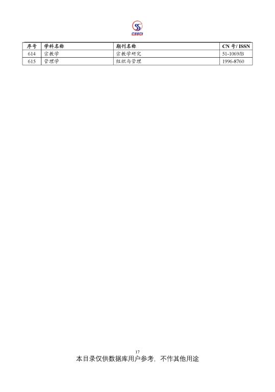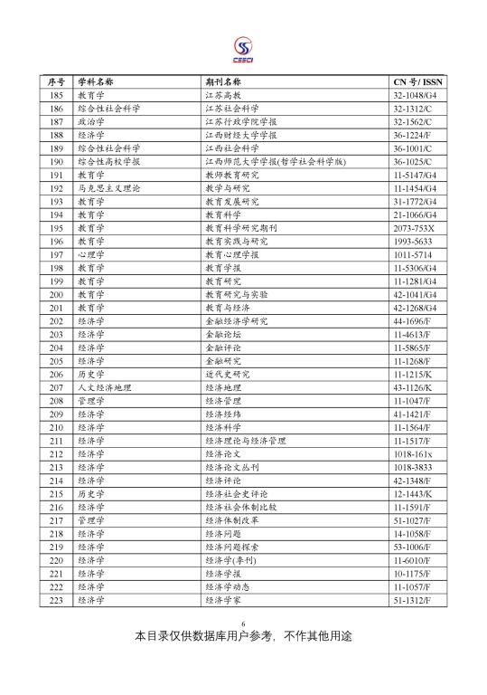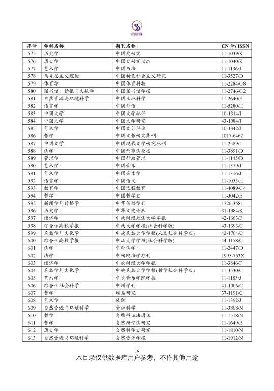 中文社会科学引文索引(CSSCI) 来源期刊目录(2021-2022)