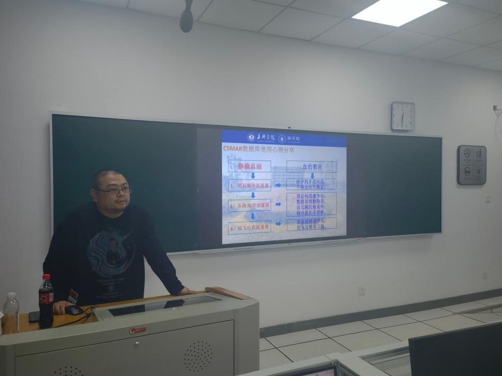 栾斌博士分享了国泰安CSMAR数据库数据下载、数据清洗、应用以及当前实证研究的前沿问题,结合自身的科研经验为大家开发选题、进行研究提出专业建议,并重点针对数据处理、应用和写作过程中的注意事项和技巧作了全面的分享。会后与会老师和栾斌博士开展的积极的互动交流,大家对跨学科研究、跨学科合作角度合作兴趣浓厚。