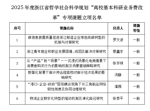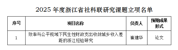 浙江省社会科学界联合会公布了《2025年度浙江省社科联研究课题立项名单公示》,百家乐赔率 1位老师项目获得立项。