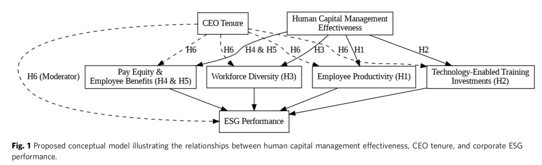 该研究基于人力资本管理与企业可持续发展关系的理论框架,从员工生产率、技术赋能的培训投资、多样性与包容性、薪酬公平和员工福利五个维度,分析了人力资本管理实践对ESG(环境、社会和治理)绩效的影响。研究提出CEO任期对人力资本管理与ESG绩效的关系具有显著调节作用,表明长期任职的CEO更有能力将人力资本战略与可持续发展目标相结合。通过对2011年至2023年间413家S&P 500公司数据的实证分析,研究发现有效的人力资本管理能够显著提升企业的ESG绩效,同时CEO任期越长,这种提升效应越显著。本研究弥补了人力资本管理与可持续发展研究领域的理论和实证空白,为企业治理、战略领导力和可持续人力资源管理提供了实践启示,并为实现人力资本与可持续发展目标的有机融合提供了理论依据。