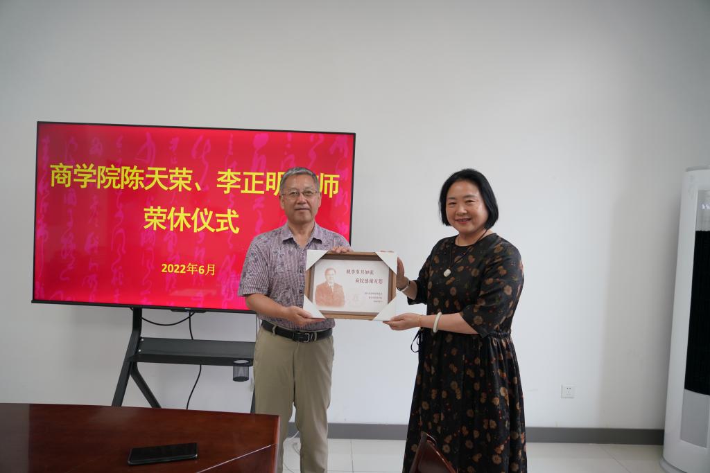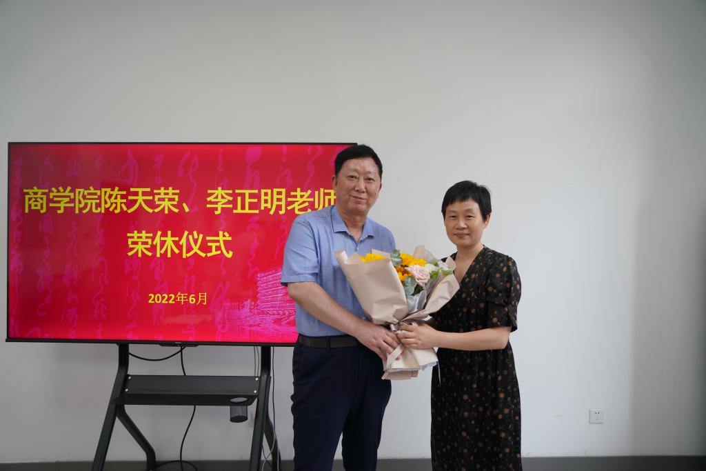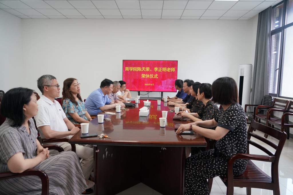 6月21日下午,百家乐赔率 在尚德楼345会议室举行陈天荣、李正明老师荣休仪式。百家乐赔率 党政领导班子成员及工商系、财务系教师代表参加仪式。