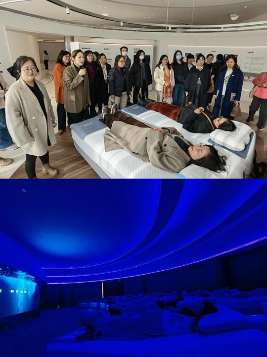 活动当天,教师们首先走进了麒盛科技的智能睡眠展厅,深入了解了企业“创造智能美妙的生活体验”的企业使命,以及“致力于提升用户睡眠体验和睡眠健康”的品牌理念。参观过程中,教师们沉浸式感受了智能睡眠科技的魅力,从智能调节、睡眠监测到个性化舒适设置,科技赋能的健康睡眠解决方案让在场教师们赞叹不已。随后,教职工们一同前往了嘉兴银杏天鹅湖景区。湖光倒影、天鹅嬉戏,冬日暖阳下的银杏天鹅湖别有一番风情。教师们漫步湖畔,赏景拍照,在繁忙的教学科研工作之余,尽享自然风光,放松身心。