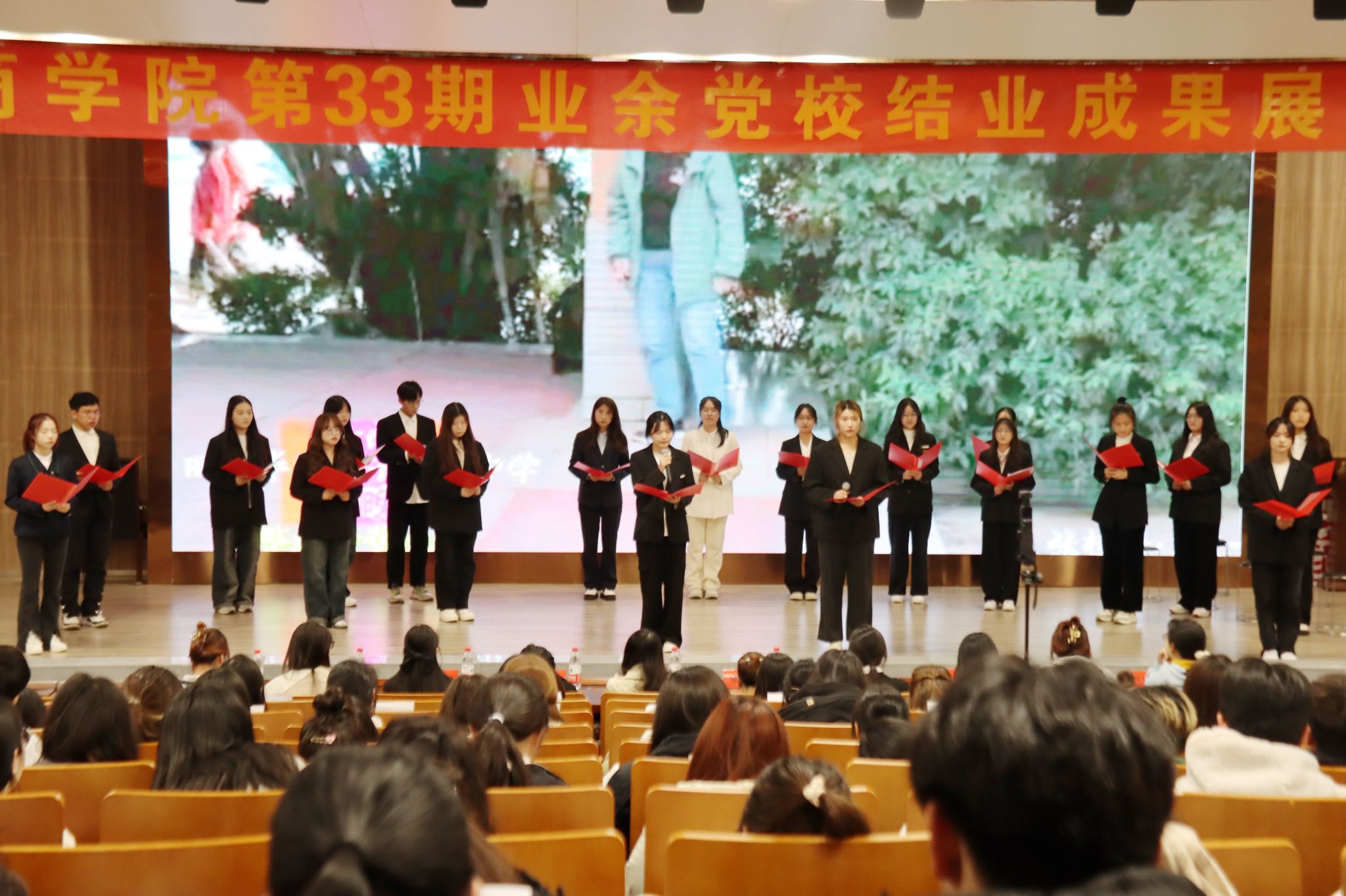 11月18日晚,百家乐赔率 在校图书馆学术报告厅举行“青春心向党,奋斗新华章”为主题的党校实践成果展。党校全体学员、朋辈党员导师、班主任以及学生党员代表200余人参加活动。