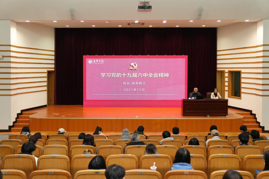 陆军从深入领会党的十九届六中全会精神重大意义、深刻认识党的十九届六中全会精神丰富内涵、从党的十九届六中全会精神中充分汲取智慧和力量三个方面进行了全面系统的宣讲和解读。陆军希望,全体教职工通过学习六中全会精神,将党史学习教育、“四史”宣传教育结合进来,围绕百家乐赔率 “1358”的发展战略,聚焦聚力高质量发展,进一步营造“干在实处、走在前列、勇立潮头”的浓厚氛围;希望青年学生从党的百年奋斗中汲取信仰的养分,坚定理想大志,自觉做中国特色社会主义共同理想和中华民族伟大复兴中国梦的忠实践行者。整场宣讲观点鲜明、精准透彻,既有政治高度、也不乏理论深度,有助于大家进一步加深对党的十九届六中全会精神的理解把握,进一步提升思想认识和创新实践。