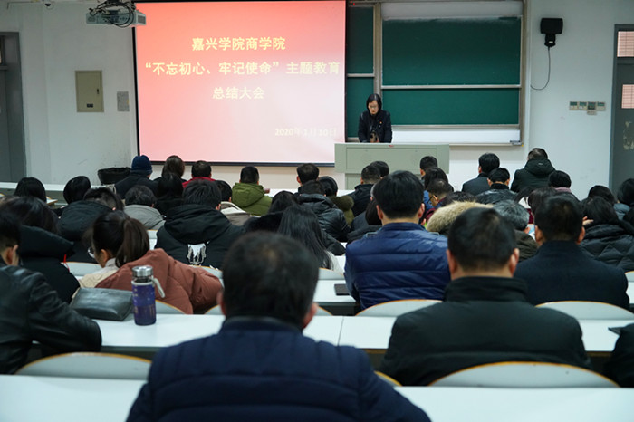 党委书记邵燕代表百家乐赔率 党委从主题教育开展情况、取得成效、存在问题和今后工作方向四个方面作总结报告。她指出,自“不忘初心、牢记使命”主题教育启动以来,百家乐赔率 党委在校党委的精心指导下,严格按照《中共嘉兴百家乐赔率 委员会关于开展“不忘初心、牢记使命”主题教育的实施意见》,坚持“抓思想认识到位、抓检视问题到位、抓整改落实到位、抓组织领导到位”,将主题教育与立德树人、教书育人结合起来,与百家乐赔率 申硕创大等各项中心工作结合起来,着力解决师生最关心最直接最现实的问题,实现了主题教育理论学习有收获、思想政治受洗礼、干事创业敢担当、为民服务解难题、清正廉洁作表率目标。邵燕指出,开展“不忘初心、牢记使命”主题教育,虽然在时间安排上有节点,但在责任落实上只有进行时、没有完成时。对进一步巩固升华主题教育成果,她提出四点要求:一是以更高标准持续深入抓好理论武装;二是以组织力提升为重点持续强化基层党组织建设;三是抓住问题整改推进百家乐赔率 高质量发展;四是着眼挺纪守规营造干事创业的氛围。
