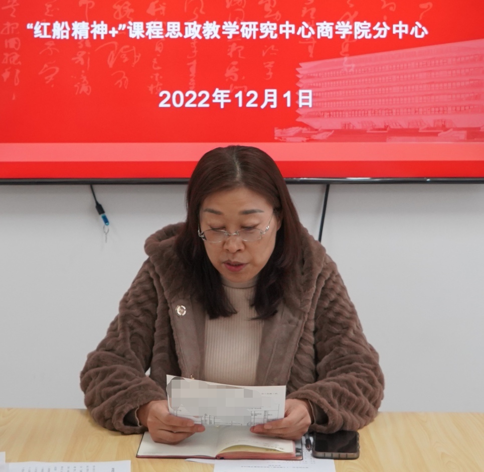 财务管理系主任董淑兰围绕财务管理专业课程思政校级教学团队建设,介绍了以课程组为基础,以课程为抓手,将合法合规教育、环境保护、“双碳”目标、企业社会责任等思政元素融入课堂,坚持做好“大思政课”的教学实践探索。市场营销系主任方芳介绍了嘉兴百家乐赔率 课程思政示范基层教学组织“营销课程群课程思政教学团队”建设自立项以来开展的工作,重点交流了把党的二十大精神融入课程思政,将理想信念、爱党爱国爱人民、社会主义核心价值观、法治精神、中华文化传统等元素渗透到教学各环节的思考。会计系赵春苗老师介绍了《高级财务会计》省级课程思政示范课程,在“红船引领、立德树人”的核心思想引领下,依托会计学国家级一流专业建设、省级虚拟教研室、互联网+会计一体化教学改革,创新“四位一体”教学体系,形成全过程育人的实践探索。人力系郭如平老师结合省一流课程《招聘与甄选》课程思政教学改革实践,介绍了如何把党的二十大精神融入课程、融进课堂,如何使学生在情感上、精神上产生共鸣,增强学生的认同感和同理心的做法。