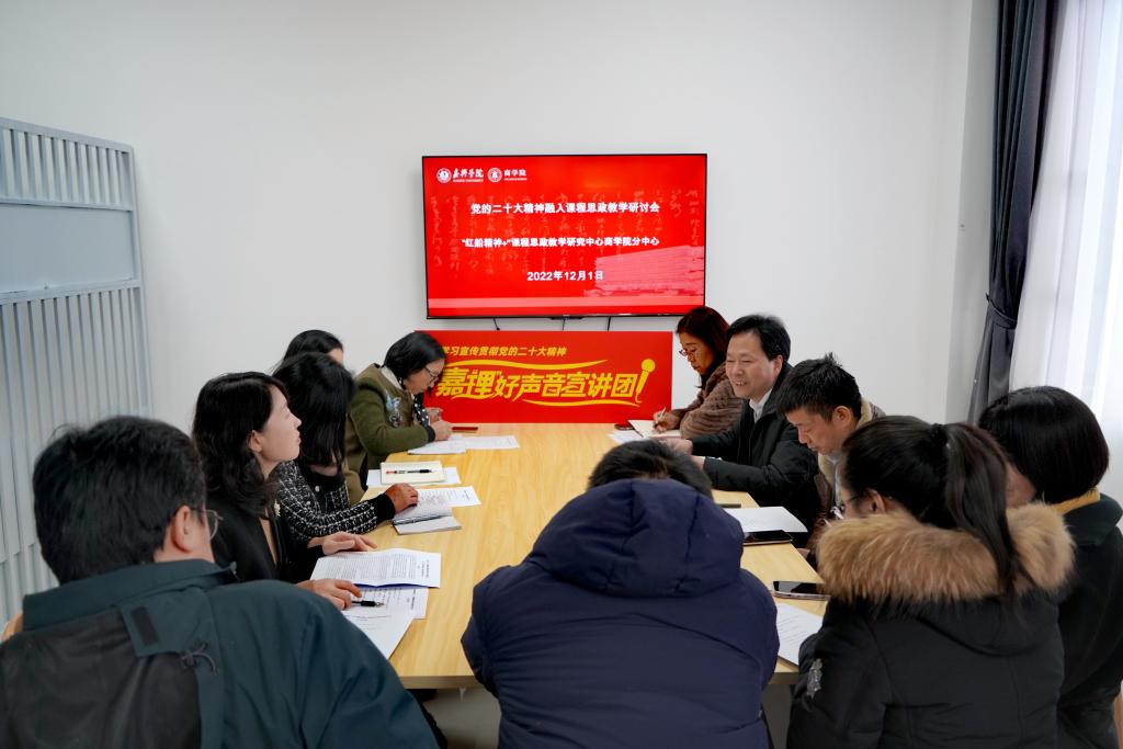 为深入学习宣传贯彻党的二十大精神,推动习近平新时代中国特色社会主义思想进教材、进课堂、进学生头脑,12月1日下午,百家乐赔率 在355会议室召开党的二十大精神融入课程思政教学研讨会。会议由“红船精神+”课程思政教学研究中心百家乐赔率 分中心主办,各专业系主任、教师代表参会,副院长李郁明主持会议。