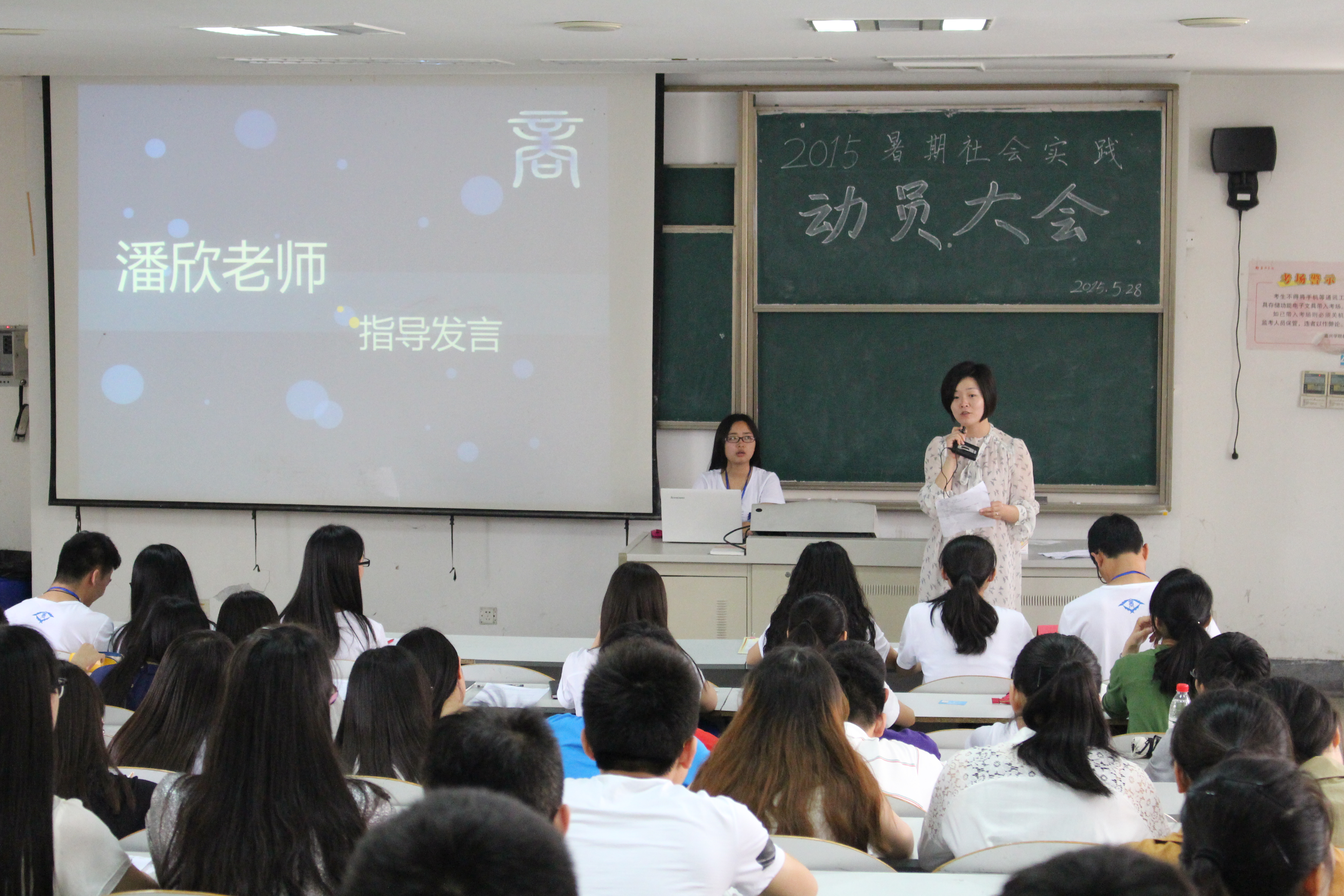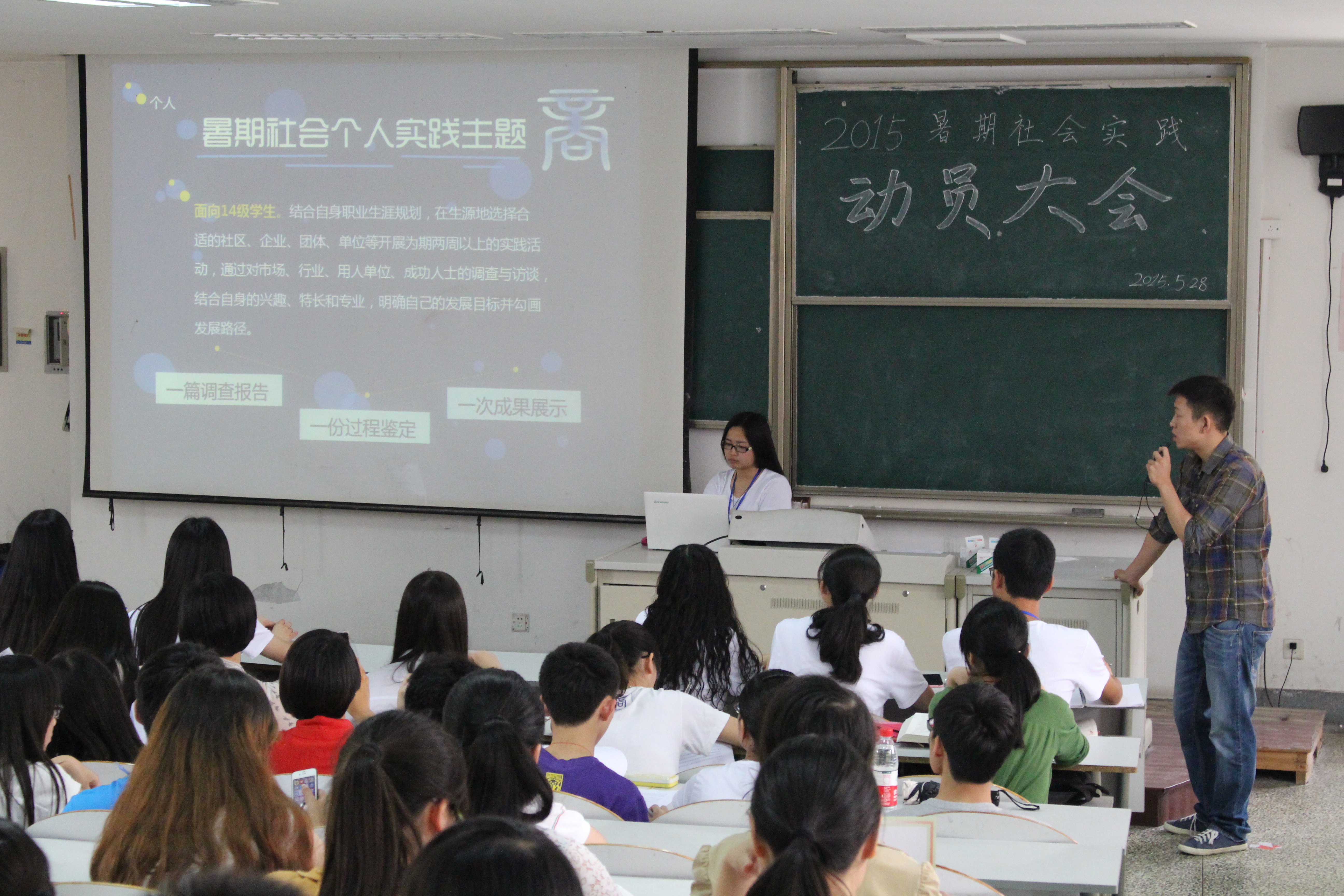5月28日中午,百家乐赔率 在教一259举行了2015年暑期社会实践动员大会。会议由团委办公室主任刘俊同学主持,百家乐赔率 团委书记潘欣老师、团学成员、班团支书和部分实践意向同学参加了会议。